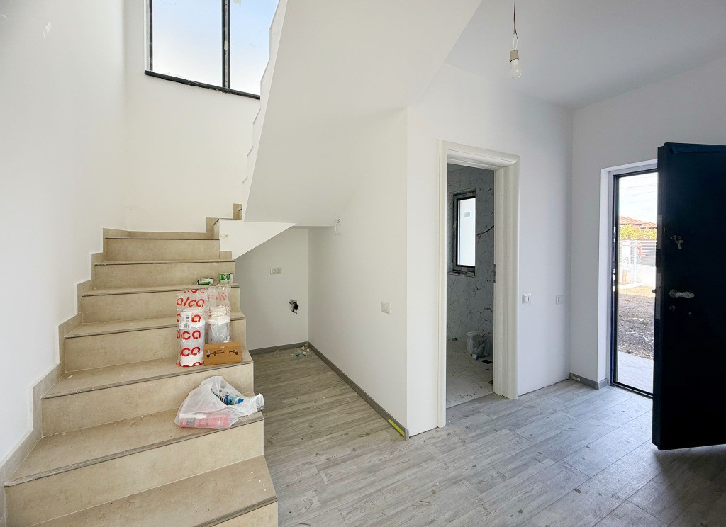 Vă prezentăm o casă nouă și modernă, situată pe un teren de 350 mp, ce vă oferă confort și funcționalitate într-un mediu plăcut. Suprafața utilă totala a casei este de 126 mp, oferind suficient spațiu pentru a vă bucura de viața de zi cu zi și pentru a vă crea propriul cămin. Construcția este nouă și modernă, realizată cu materiale de calitate, asigurându-vă un trai confortabil și durabil în timp. Casa dispune de compartimentare funcțională, unde găsim un hol de primire, o cameră de zi spațioasă, 3 dormitoare, dressing, 2 bai, o bucătărie modernă și o terasă spatioasa pentru momente de relaxare. Casa va fi predata la cheie cu toate finisajele incluse. IMPORTANT: Disponibila pentru mutare imediata. Locația este liniștită și oferă acces facil către serviciile și facilitățile necesare, precum magazine, școli și mijloace de transport în comun. Andreea Ducu - 0783002568 - Consultant Imobiliar Alliance Rezidential