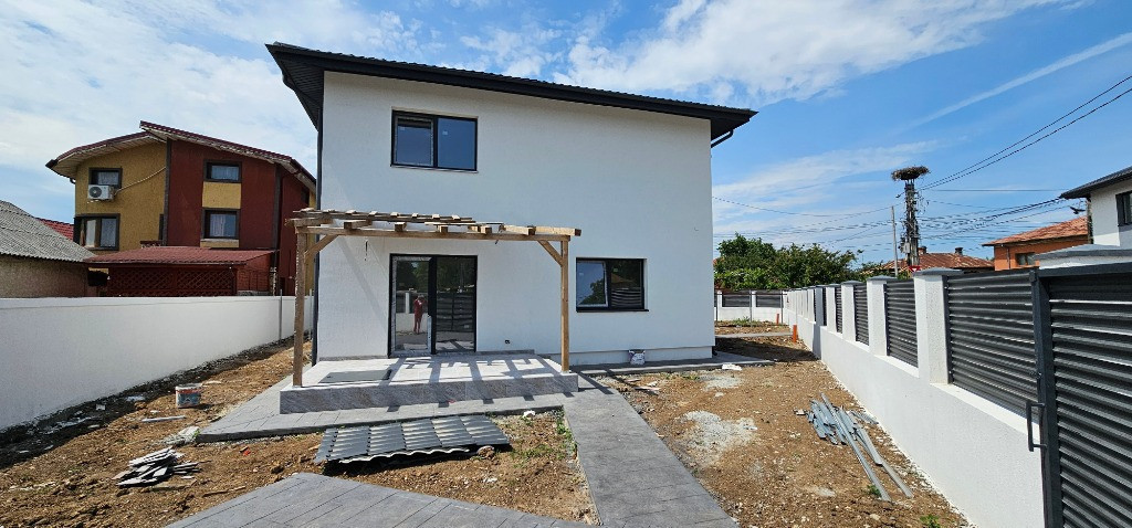 REAL HOME INVESTMENT va prezenta spre vanzare o vila individuala amplasata la doar 300 de metri de bulevardul principal 1 Mai si statie STB. -Zona de case cu strazi asfaltate, in proximitatea punctelor de interes(gradinita ,scoala si magazine). COMISION 0% PENTRU CUMPARATOR! Casa dispune de un teren în suprafață de 330 mp, regim de înălțime P+1 E + POD,și o suprafață interioară utilă de 120 mp,fiind compartimentata astfel: PARTER: -Vestibul 4,30 mp -Living 30,07 mp -Bucatarie 9,07 mp -Depozitare 3,80 mp -Grup Sanitar 3,50 mp TERASA acces acoperita 3,60 mp TERASA 10,01 mp ETAJ: -Hol 3,60 mp -Birou 9,70 mp -Dormitor 13,80 mp -Dormitor 14,70 mp -Grup sanitar 6,60 mp -Balcon 3,50 mp INCALZIRE IN CALORIFERE FINISAJELE INTERIOARE LA ALEGERE ALEI CU BETON AMPRENTAT BECI Imobilul se vinde la cheie cu finisaje complete: faianta, gresie, parchet, usi interioare si obiecte sanitare . Acesta se preda cu utilitatile zonei : curent electric , gaz, fosa , put cu hidrofor sau pompa submersibila . - Imobilul poate fi achizitionat atat din surse proprii, cat si prin credit bancar ! -Consultanta financiară gratuita ! Pentru a afla toate detaliile care conteaza pentru tine , ai la dispozitie un consultant dedicat , care iti va fi alaturi si te va ghida in a lua o decizie informata . ELENA