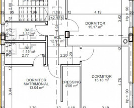 Etaj - suprafata utila 67.83 mp: dormitor matrimonial cu baie proprie si dressing + alte doua dormitoare, hol si baie.