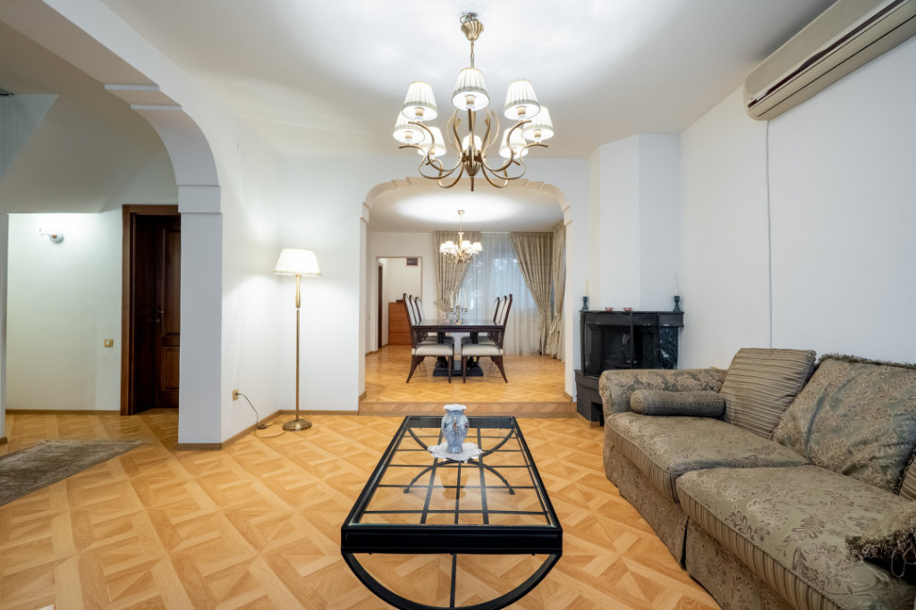 Relansată la 850.000 €, în zona Pipera – Erou Iancu Nicolae, aproape de Grădina Zoologică, această vilă individuală finalizată în 2010 oferă exact acel mix rar pe care îl caută familiile din nord: spațiu, intimitate, funcționalitate și dotări care transformă casa într-un adevărat „resort privat”. Proprietatea este desfășurată pe demisol + parter + etaj + mansardă, cu compartimentări clasice, proporții echilibrate și 8 camere versatile — ideale pentru o familie numeroasă, work-from-home, cameră de oaspeți, playroom sau birou dedicat. Zona de zi – locul în care se simte „acasă” Living amplu și luminos, cu șemineu autentic și zonă de dining Bucătărie deschisă, modernă, integrată armonios în spațiul de zi Conexiune firească către curte, pentru seri relaxante și întâlniri cu prietenii Demisol & mansardă – „extra” care face diferența Demisol complet utilat cu: cramă (pentru pasionații de vinuri) saună umedă, cameră tehnică garaj subteran (1 mașină) Mansarda adaugă un nivel de intimitate și relaxare: saună uscată + spațiu ideal pentru lounge / hobby / cameră multifuncțională Curtea – atmosfera de vacanță, fără să pleci din București Piscină exterioară încălzită – punctul central al verii, dar utilizabilă și în extra-sezon puț propriu + aspersoare și sistem de irigație automatizat gard de zidărie pentru intimitate și zonă verde ușor de întreținut Siguranță & confort Generator 9 kW cu pornire automată – independență și continuitate Porți automatizate, video-interfon la acces pietonal Supraveghere video pe proprietate + sistem de alarmă cu senzori de mișcare Rulouri electrice cu telecomandă Garaj electric cu telecomandă + 4 locuri de parcare exterioare Aer condiționat (2 aparate) pentru confort pe tot parcursul anului Detalii de calitate: scări îmbrăcate în granit italian, acoperiș cu țiglă premium Localizare – avantaj real pentru familii Erou Iancu Nicolae rămâne una dintre cele mai dorite zone rezidențiale din nord, aleasă frecvent de familii și expați pentru siguranță și acces rapid către: British School of Bucharest (BSB) American International School of Bucharest (AISB) Mark Twain International School restaurante, centre comerciale, clinici private, spații de recreere conexiune rapidă către Pipera – Aviației – Floreasca și zona de business Preț relansat: 850.000 € Dacă vrei o locuință care îți oferă confort, siguranță și un stil de viață complet, te invit la vizionare. Îți pot trimite și turul video / prezentarea completă. Id intern: 0349
