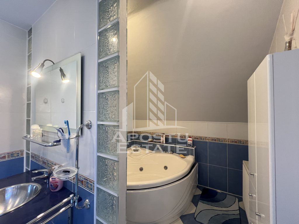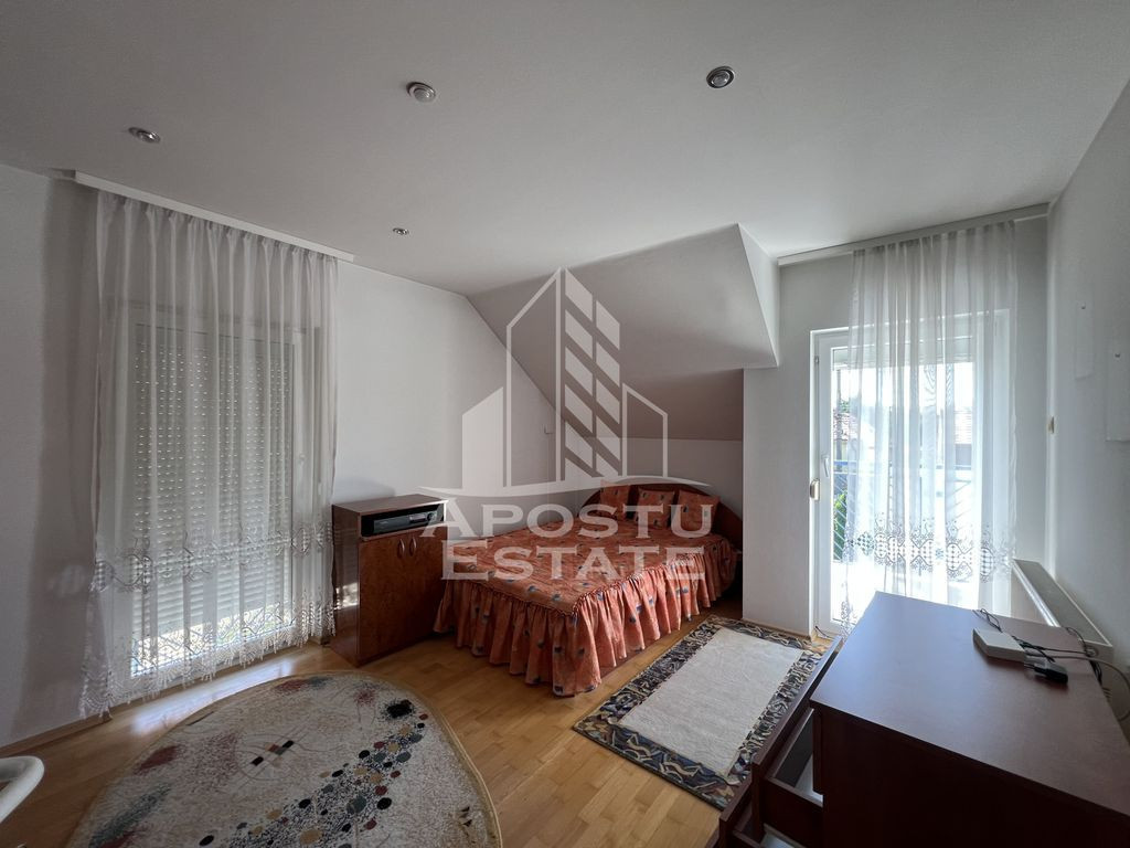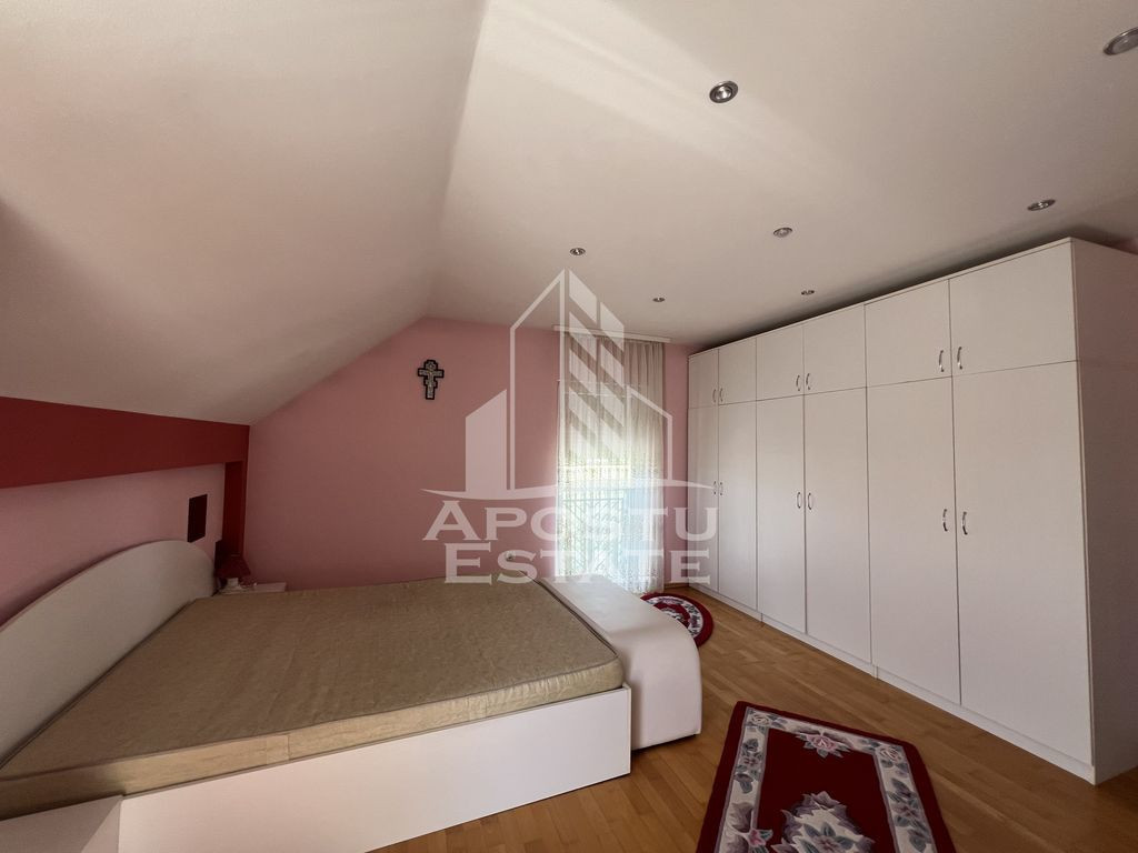 Agenția Imobiliară Apostu Estate va propune spre vânzare o vilă deosebită, cu acces facil spre puncte de interes, precum magazine, spitale, școli.? Vilă este compartimentată: - la parter… living foarte spațios, bucătărie închisă, baie, casa scării, garași terasă și zona barbecue. - la mansardă… 3 camere, o baie cu cabină de duș și cadă, 2 balcoane.. Dotări: - centrală termică și încălzire prin calorifere - panouri solare ptr încălzirea în special a apei din piscină - saună ptr un număr mare pe persoane - finisaje cu bun gust - scara de lemn - curte in față și în spatele casei - loc generos ptr parcare - termopane - irigație Pentru programarea vizualizării și întrebări legate de orice alte detalii vă stau cu drag la dispoziție.