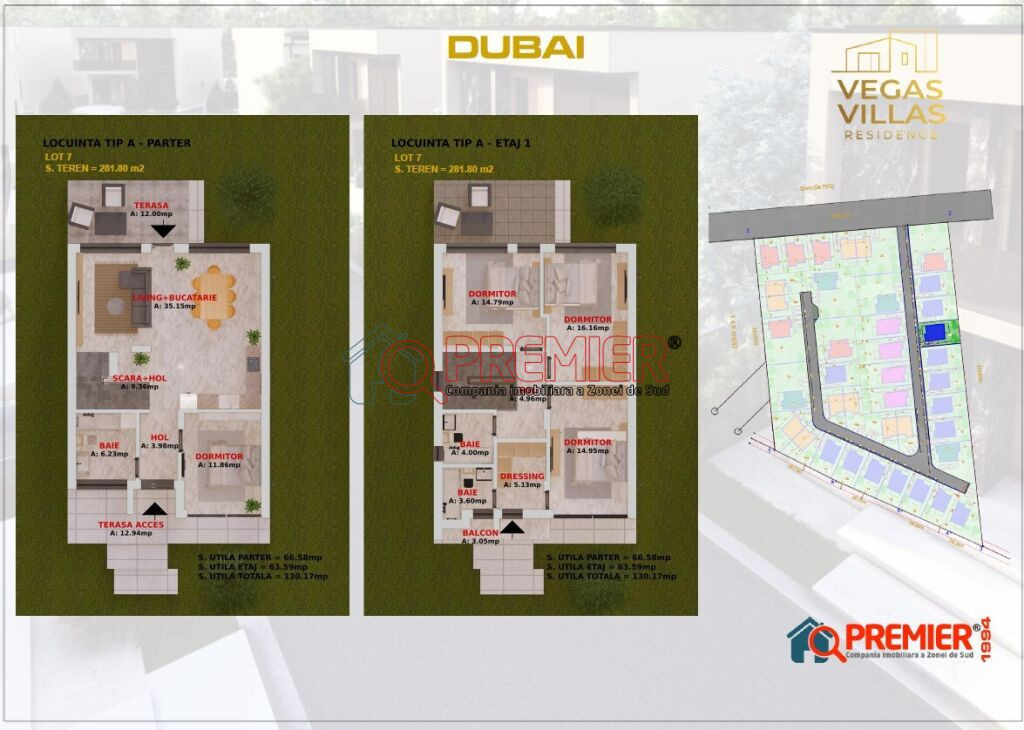 NOU! VILA INDIVIDUALA DUBAI– Complex Rezidential – SPLAIUL UNIRII Premier Imobiliare va ofera spre vanzare o superba vila individuala amplasament excelent, Splaiul Unirii. Beneficiază de acces rapid la: Șoseaua Olteniței - Splaiul Unirii - Șoseaua de Centură Suprafata teren = 281.80 mp Suprafata construita= 84.10 mp Suprafata desfasurata = 171.48 mp Suprafata balcoane = 3.05 mp Suprafata terasa neacoperita= 12 mp Compartimentarea ideala pentru familia dumneavoastra : Parter - Living + Bucatarie : 35.15 mp - Dormitor 1 : 11.86 mp - Baie : 6.23 mp - Hol : 3.98 mp - Scara + hol : 9.36 mp Suprafata locuibila Parter : 66.58 mp + Terasa/Veranda 12 mp - Terasa acces : 12.94 mp Etaj - Dormitor 2 : 14,79 mp - Dormitor 3 : 16,16 mp - Dormitor 4 : 14,95 mp - Baie 2 : 4,00 mp - Baie 3 : 3,60 mp - Dressing : 5,13 mp - Hol ; 4,96 mp Suprafata locuibila Etaj : 63,59 mp + Balcon 1 = 3,05 mp Suprafata teren : 281.80 mp Vila v-a fi predata la cheie cu toate bransamentele aferente ( Apanova, Enel, Engie) si v-a dispune de finisaje Premium din paletarul dezvoltatorului pe care le puteti alege.finisaje Circuit inchis, securizat, acces rapid catre arterele principale ale capitalei, zona verde si linistita pentru un trai armonios. Pentru informații suplimentare sau pentru a programa o vizionare, vă invit să mă contactați: Alina Moldoveanu - 0727.736.303 Serviciul nou oferit de PREMIER Imobiliare! Solicita acum VIZIONARE ONLINE pentru aceasta proprietate! COMISION 0% Această proprietate se poate achiziționa prin orice tip de credit bancar. Departamentul nostru financiar Premier Credit Hub vă stă la dispoziție GRATUIT (comision 0%) pentru: - identificarea celei mai bune soluții de finanțare; - întocmirea dosarului bancar complet; - obținerea rapidă a creditului necesar achiziției. Beneficiați de un serviciu ALL IN ONE, cu acces direct la ofertele tuturor băncilor comerciale din România. Se acceptă inclusiv venituri din străinătate, astfel încât fiecare client să poată cumpăra în cele mai avantajoase condiții. Solicitați acum o simulare de credit direct din anunț sau cereți detalii consultantului Premier Imobiliare!