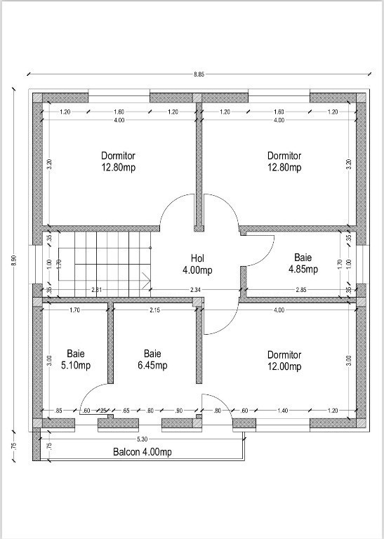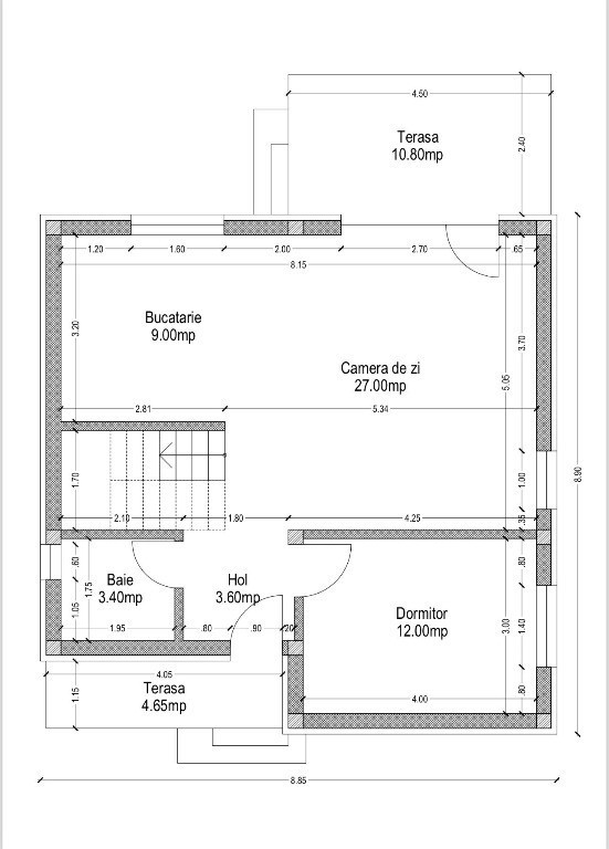 Placă de beton peste etaj, garantând stabilitate și durabilitate, cu posibilități de extindere ulterioară.