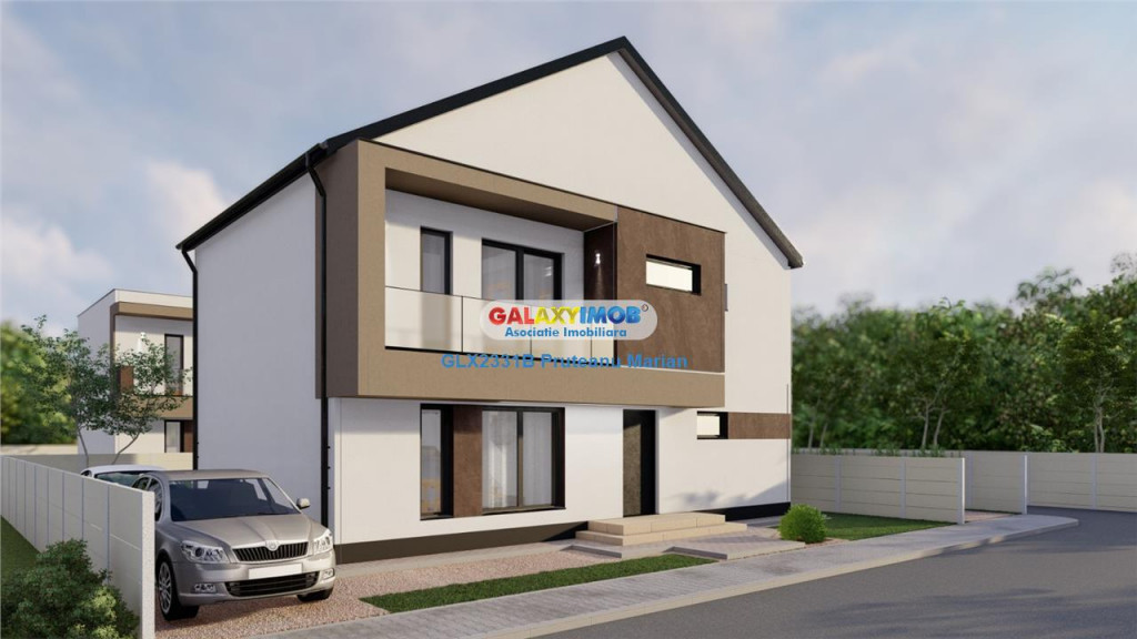 Vila Premium proiectata in stil modern cu arhitectura avangardista , spatii bine vitrate ,zona de Relaxare ( terasa spatioasa) zona de barbeque, gazon ,aspresoare.