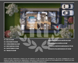 Terenul aferent de 350 mp, în cadrul căruia se dispune de o curte liberă de peste 260 mp, o terasă de 13 mp și cele 2 parcări care sunt amplasate în zona de acces a vilelor, această poziționare neafectând curtea destinată activităților familiale și relaxării.