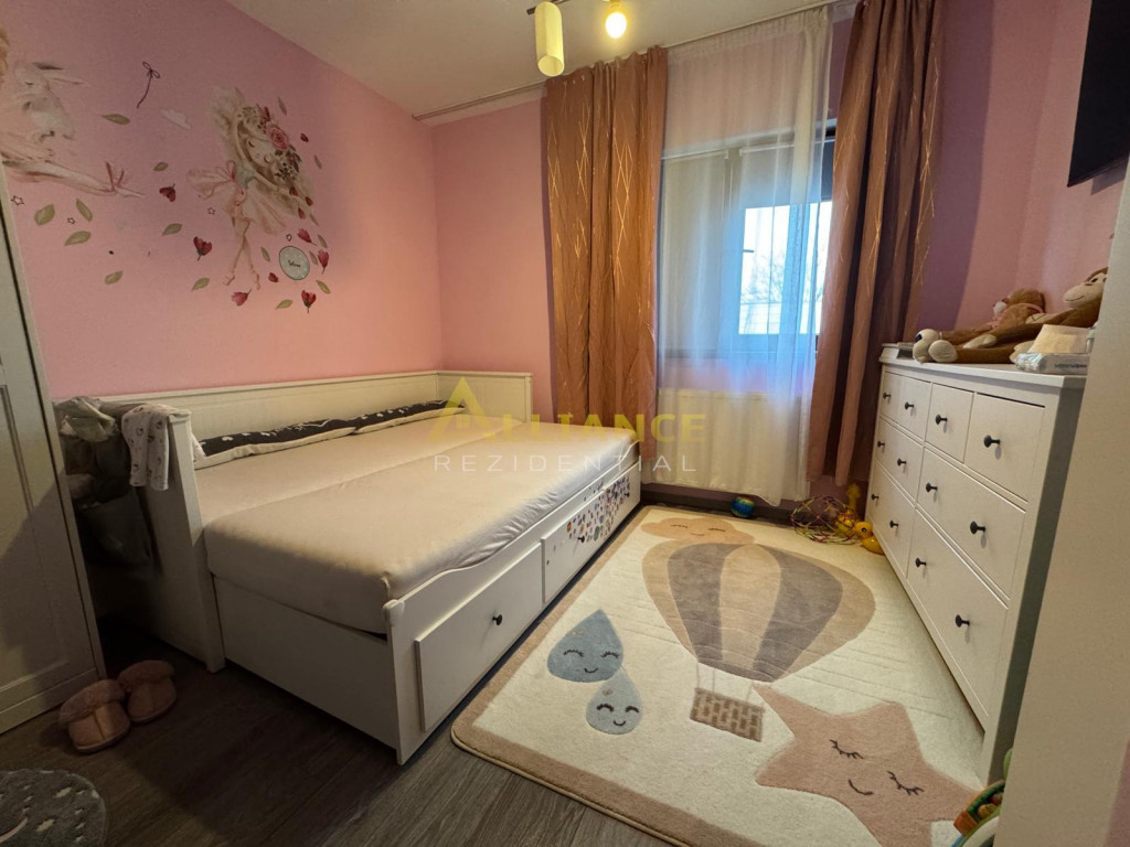 Etaj: doua dormitoare luminoase, baie si balcon