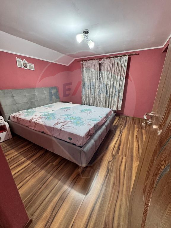 Vilă pregătită de locuit la 5 km de Craiova, în Comuna Bucovăț. Este pozitionată frumos, având o panoramă superbă, aer curat dar și liniște, potrivita pentru familii cu copii. Împărțită astfel: 4 dormitoare, 1 la parter si 3 la etaj, 2 băi, living spatios, bucatarie open-space, dresing, camera centralei care este pe peleti, 2 holuri, casa scării cu balustradă de inox, pod anvelopat cu vată bazaltică. Izolatia exterioară este realizată cu polistiren de 8. Curtea dispune de 600 mp. iar în fața casei este construit un garaj de 20mp. Împrejmuirea curtii este realizata cu gard modern din placi de beton, poarta de acces auto este metalică si este actionată din telecomandă. Ca utilități: Curent Apă curentă Canalizare cât și fosă septică, Centrală pe peleți - încălzirea făcându-se prin calorifere. Wireless, Sistem de securitate video. A fost construită pentru locuit, nu pentru a fi vandută si încă se locuieste în ea, putând fi eliberată imediat.