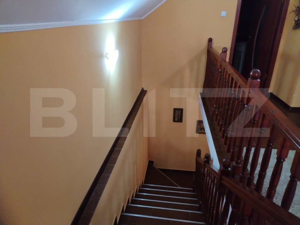 Blitz Satu Mare va propune spre achizitionare o proprietate impresionanta, finalizata in 2015. Este situata intr-o zona linistita si aerisita. Aceasta casa confera un echilibru ideal intre confort modern si un mediu natural deosebit. Suprafata totala a terenului este de 1241 mp. Casa are 210 mp utili si este configurata astfel: la parter se regasesc un dormitor, living generos, dressing, bucatarie, baie, camera tehnica(centrala+boiler) cu intrare atat din interior cat si intrare separata din exterior. La etaj sunt doua dormitoare, hol mare, mini sala de fitness, biblioteca generoasa si o baie. Casa este mobilata, utilata si ultrafinisata cu materiale premium de calitate superioara. Este izolata atat pe exterior(5 cm de polistiren), cat si pe interior(vata minerala+placi de rigips pe caramida). Usa de la intrare si geamurile(prevazute cu jaluzele) sunt din termopan. Toate acestea genereaza costuri de intretinere reduse, ceea ce confera o solutie de locuire economica. Are o terasa de 20 mp, cu o priveliste deosebita inspre curte. Pe teren se regasesc inca doua constructii, garajul cu lemnaria(45 mp) si o magazie pentru scule de gradinarit(9 mp). Curtea interioara este o oaza de verdeata, care se continua cu o frumoasa livada de pomi fructiferi. Proprietatea este prevazuta cu senzori de lumina si este imprejmuita de un gard(270 metri liniari) din beton. Aceasta casa este ideala pentru cei care apreciaza linistea, spatiul generos si peisajele deosebite. Contactati-ne pentru detalii suplimentare si vizionare! Cod ofertă / ID BLITZ: P145535 Id intern: P145535