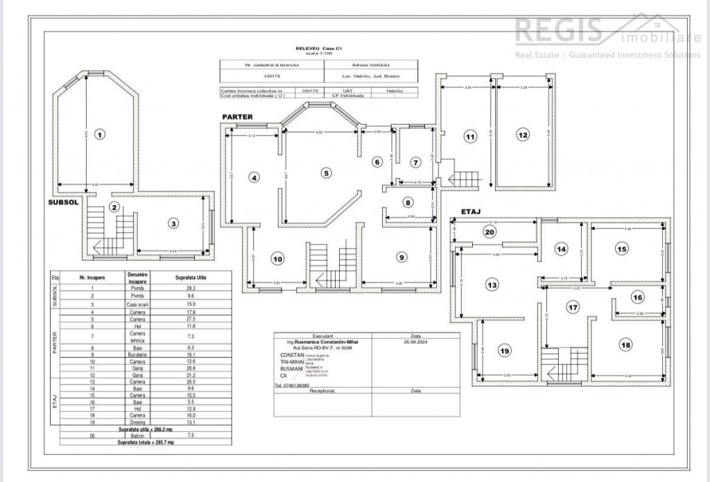 Regis Imobiliare va propune la vanzare, Casa la rosu de 300 mp cu 800 mp teren, intr-o zona rezidentiala exclusivista din Halchiu, Brasov O oportunitate rara de investitie intr-o zona in plina dezvoltare! Va propunem spre vanzare o vila spatioasa, construita la rosu, situata intr-un cartier nou, cu vile moderne, pe o strada privata din localitatea Halchiu, judetul Brasov mdash; o zona linistita, aerisita si cu acces rapid catre oras. Ne bucuram de vecini putini si de calitate, oameni linistiti si comunitate unita. Detalii proprietate: * Suprafata utila: 300 mp * Regim de inaltime: beci parter etaj * Constructie solida: realizata din caramida si beton armat * Acoperis: tigla ceramica * Doua garaje finalizate ndash; perfecte pentru familii cu mai multe autoturisme * Teren generos: 800 mp, imprejmuit cu gard din beton pentru intimitate si siguranta * Utilitati: put forat pentru alimentare cu apa Avantaje locatie: * Zona noua, moderna, cu vile cochete * Strada privata, cu trafic redus ndash; ideala pentru familii * Aproape de Brasov (acces rapid spre oras) * Peisaj natural, aer curat si comunitate prietenoasa Aceasta proprietate este ideala pentru cei care isi doresc sa finalizeze o casa dupa propriul gust, intr-o zona in continua expansiune si apreciere imobiliara. Contacteaza-ma pentru mai multe informatii sau pentru o vizionare! Aceasta poate fi viitoarea ta casa sau o investitie inteligenta in apropiere de Brasov. Alege sa construiesti un camin asa cum ai visat, intr-un mediu curat, civilizat si inconjurat de oameni de incredere. *Comision 2% TVA*