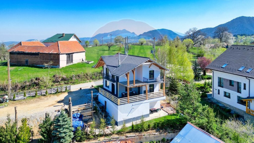 Agenţia imobiliară Remax Evolution vă prezintă, spre vânzare, în sistem de reprezentare exclusivă şi cu comision 0% din partea cumpărătorului: Situată în pitorescul sat Sohodol, la doar 4,3 km de celebrul Castel Bran, această vilă în stil boutique îmbină rafinamentul clasic cu confortul modern. Proprietatea reprezintă alegerea ideală pentru o casă de vacanță exclusivistă, oferind o experiență autentică și sofisticată în inima Transilvaniei. Vila este decorată și mobilată într-un stil renaștere și baroc napoleonian, cu accente artistice deosebite. Interiorul impresionează prin pereți finisați cu Stucco Veneziano, vitralii elegante, precum și lămpi și aplice de colecție, fiecare piesă fiind semnată și însoțită de certificat de autenticitate, înscris la Uniunea Artiștilor Plastici. Atmosfera creată este una unică, ce evocă eleganța epocilor clasice, oferind în același timp confortul necesar unui refugiu modern de lux. Vila dispune de 4 dormitoare, 3 băi, un living spaţios, precum și o bucătărie complet echipată, fiind concepută pentru confort și relaxare deplină. Proprietatea este dotată cu televizor cu ecran plat, oferă acces gratuit la Wi-Fi și parcare privată pentru 7–8 autoturisme. În plus, proprietatea dispune de un foișor funcțional de 36 mp, ideal pentru momente de socializare și relaxare, precum și de un ciubăr pentru relaxare, perfect pentru destindere în aer liber, indiferent de anotimp. La proprietate se ajunge din DN 73 în aprox. 7 min pe strada Bradul Înalt 131A. Terenul este de 847 mp, front de 81 m. Vila este construită în 2023. Există un corp principal cu o amprentă la sol de 123 mp, regim de construcţie D+P+M după cum urmează: demisol (45 mp), cu zonă de dinning, bucătărie, baie şi cameră tehnică; la parter (63 mp) avem hol, baie, living generos, dormitor, terasă de 41 mp; la mansarda (62 mp) avem hol, 3 dormitoare şi o baie. Vila are 2 centrale, una pe lemne de 40 Kw şi una pe gaz de 32 Kw, încălzire în pardoseală, gresie, marmură, faianţă, parchet, toate calitate premium, uşi de interior tip smart, ferestre din PVC cu geam termopan din 3 foi de sticlă, hidroizolaţie, tencuită interior şi exterior, izolaţie de 10 cm cu densitate de 100, Construcţia este realizată din cadre de beton şi cărămidă Porotherm, iar acoperişul din ţiglă. Vila este însorită, având orientarea în principal spre sud şi vest. Proprietatea este amplasată într-o locație privilegiată, la 3,5 km de DN73, la 4,3 km de Castelul Bran, la 13 km de autostrada A3. În zonă mai sunt Cetatea Râşnov, Dyno Park, Magic Park, Alpine Coaster Cheile Grădiştei. De asemenea, se află în proximitatea Aeroportului Internațional Ghimbav, asigurând un acces rapid și comod, cât şi la aproximativ 43 de minute distanță cu mașina de Braşov. Certificat energetic în curs de obţinere. Vă mulţumim şi vă stăm la dispoziţie cu detalii suplimentare despre acest imobil.