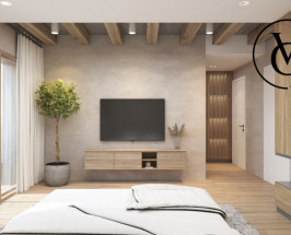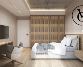 -Dormitor matrimonial cu baie proprie și terasă.