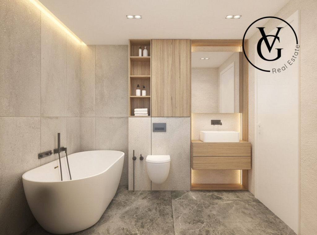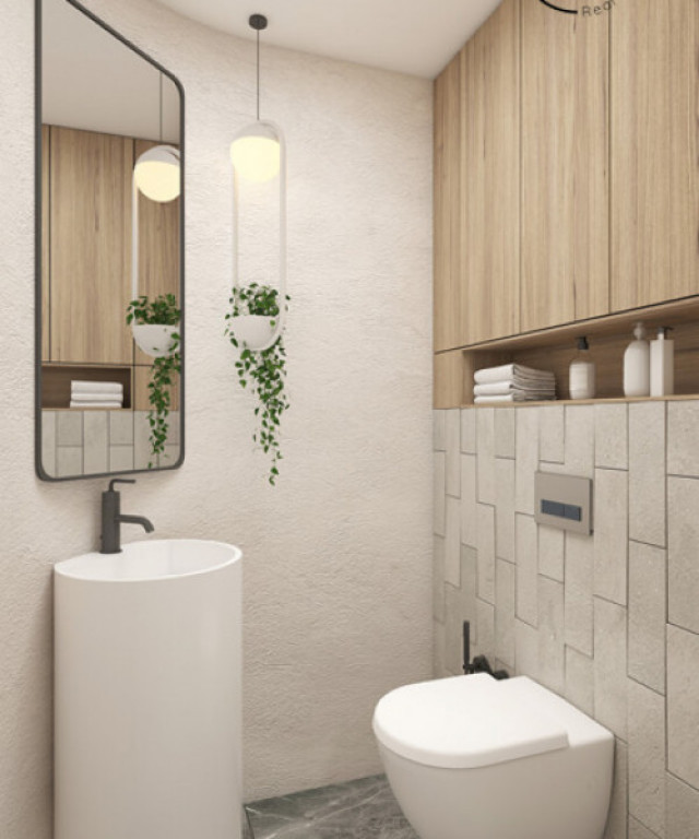 - Bai functionale, ceramica 1.20/2.40 m si obiecte sanitare: rezervor wc incastrat Tece, lavoar pe blat, cada freestanding, dus cu sticla securizata paravan si rigola;