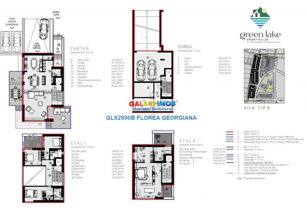 Vila de Lux in Complexul Green Lake - Eleganta si Tehnologie in Nordul Bucurestiului Va prezentam o vila exclusivista situata in unul dintre cele mai cautate complexe rezidentiale din nordul Capitalei - Green Lake. Combinatia perfecta intre design modern, tehnologie smart si un mediu natural de exceptie. Locatie Premium - Situata in zona de nord a Bucurestiului, cu acces rapid la Soseaua de Centura, DN1 si aeroportul Henri Coanda. - In proximitatea celor mai bune scoli internationale, centre de business, mall-uri si spatii de recreere. - Complex cu acces controlat, paza permanenta si infrastructura impecabila. Calitatea proiectului Green Lake - Proiect conceput de arhitecti si ingineri de renume, cu standarde europene. - Constructie solida, materiale premium si finisaje de ultima generatie. - Spatii verzi generoase, oferind un cadru natural unic. - Proiectul dispune de o deschidere de 225 de metri la Lacul Grivita cu alei pietonale disponibile tuturor locatarilor din complex - In interiorul complexului se regasesc scoala privata si club privat Vila - Tip D - Detalii Caracteristici - Suprafata generoasa, compartimentare inteligenta si lumina naturala abundenta. - Living spatios cu vedere panoramica catre spatiul verde. - Dormitoare master cu baie proprie si dressing. - Terase si gradina privata amenajata. - Locuri de parcare incluse. - Sistem smart home integrat: controlul temperaturii, iluminatului, securitatii si al dispozitivelor de la distanta. - Design contemporan, cu accent pe confort si functionalitate. - Eficienta energetica ridicata, costuri reduse de intretinere. Beneficii pentru viitorul proprietar - Un stil de viata exclusivist intr-o comunitate selecta. - Valoare ridicata a investitiei - zona de nord ramane cea mai cautata pentru proprietati premium. - Siguranta si intimitate asigurate de complexul rezidential. Suprafete - 541 mp - teren - 500 mp - suprafata construita - 132 mp - amprenta la sol - 60 mp - terase Pret - 1.506.000 - 1.608.000 euro TVA Livrare - martie 2026 Aceasta vila din Green Lake imbina armonios eleganta, confortul si tehnologia. Este alegerea ideala pentru cei care isi doresc un stil de viata rafinat si sigur, in inima uneia dintre cele mai bune zone din Bucuresti. Contacteaza-ne pentru o vizionare privata! Informatii eficienta energetica: Clasa energetica: Consumul de energie primara: Indicele de emisii echivalent CO2: Consum de energie din surse regenerabile: