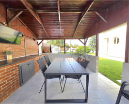 Curteisiifacilitatiiexterioare: Curteimoderniamenajata cuigazon,isistemideiirigareiautomatizat,ialeiidinipiatra alba,igardiinaltisiiportiiautomate,ipiscina generoasai(cuimozaic) dei9ixi4imi(adancimei1,70im),ifiligorieicompletidotata,iterasa deivara perfecta pentruirelaxare,iconstructiei(anexa) dei60impi(oiincapereimultifunctionala,ipeiunisingurinivel)