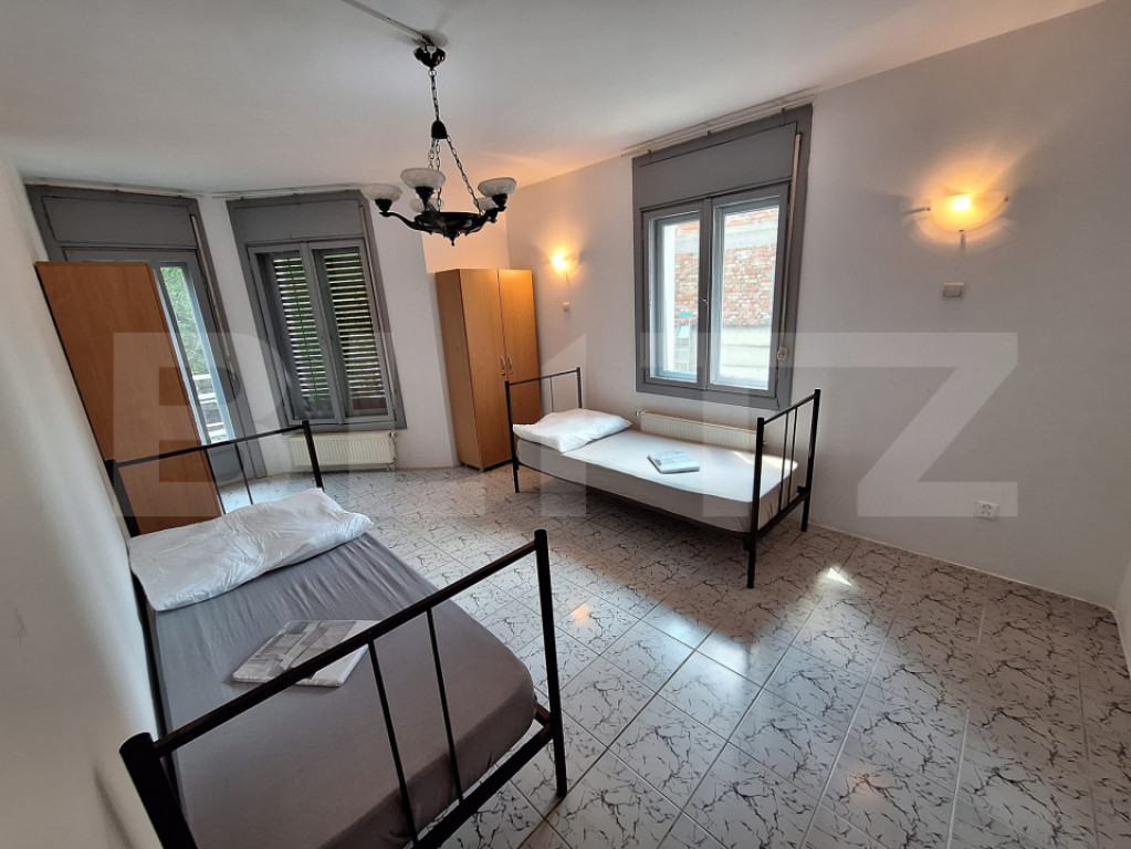Blitz va prezinta vila mare cu 11 camere si curte de închiriat in Timisoara pentru muncitori, diverse alte activitati ! Vila se afla intr o zona excelenta, la 3 minute de mers cu mașina de centrul Timisoara, zona bulevard Cetății. Proprietatea dispune de 11 camere utilate cu paturi, saltele si dulapuri, in funcție de necesitați poate caza 24-26 muncitori care sa locuiască cate 2-3 in camera, 5 bai, 3 bucătarii utilate, frigidere, mașini spălat, hote, mașini gătit., supraveghere video. Are toate utilitățile, centrala pe gaz cu termostat +puffer mare pentru apa calda. Este disponibila si se pretează excelent pentru cazare muncitori care lucrează in multinaționale, clinica medicala, afterschool, arhiva, alte activitati, etc.! Se închiriază pe termen îndelungat, prețul este de 2600 euro+cheltuieli+garantie. In acest preț se asigura si administrarea liniștea folosirii, supravegherea muncitorilor in condiții normale. Exce;enta pentru business. Pretul este usor negociabil. Cod ofertă / ID BLITZ: P158438 Id intern: P158438