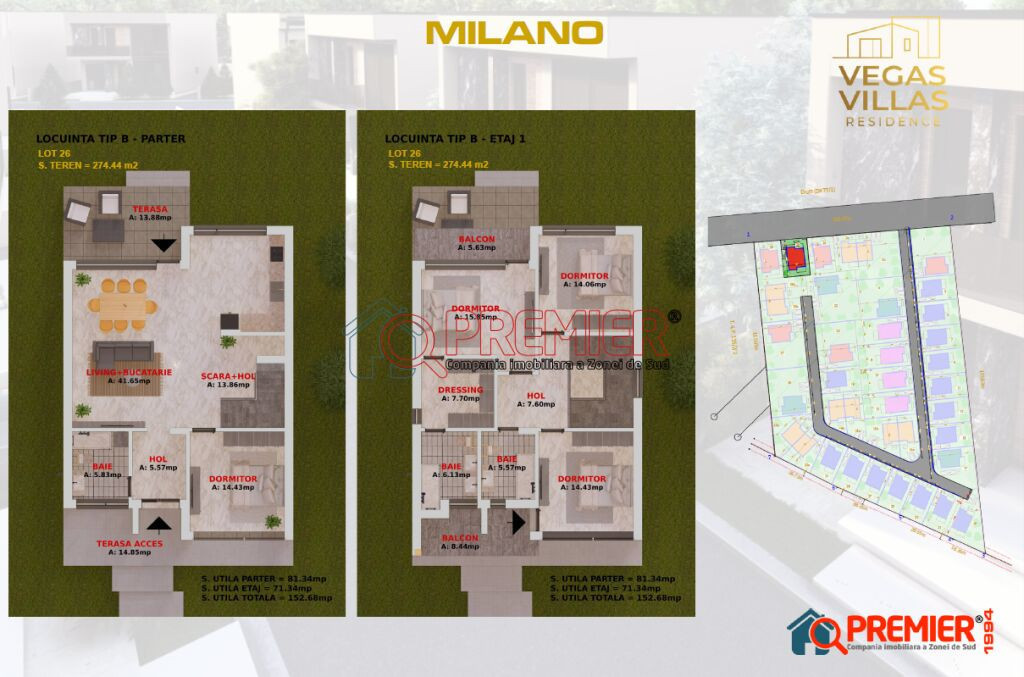 Vilă Individuală – „Vila Milano” – Splaiul Unirii - Cheiul Dambovitei - Popești-Leordeni Vrei să te muți într-o casă nouă, luminoasă și modernă, unde să îți poți crea propria oază? Vila Milano îți oferă spațiu pentru tot ce îți dorești: terasă generoasă, grădină de 195 mp și chiar posibilitatea de a amenaja piscină! Detalii imobil Regim: P+1 Suprafață utilă: 152 mp Teren total: 274 mp Terase + balcoane: 42 mp 5 camere | 4 dormitoare 3 băi Bucătărie închisă Cameră tehnică / utilități 2 locuri de parcare Dotări & Finisaje Casă nouă (2026) – predare finalizată Încălzire prin pardoseală Parchet, gresie, faianță, tâmplărie PVC Aer condiționat Ușă metalică Clasa energetică A Apă, Gaz,Curent 220V, canalizare Curte individuală + grădină Contorizare individuală Acces rapid către Splaiul Unirii Aproape de magazine, școli, grădinițe, transport public și autostradă. Preț: 304.000 € + TVA Avans minim: 15% Comision cumpărător: 0% ???? Contact: Adrian Cantia – 0731 510 854 Nu rata ocazia de a te muta într-o vilă premium, într-unul dintre cele mai căutate zone! Sună acum și programează o vizionare – următorul proprietar poți fi chiar tu! Serviciul nou oferit de PREMIER Imobiliare! Solicita acum VIZIONARE ONLINE pentru aceasta proprietate! COMISION 0% Această proprietate se poate achiziționa prin orice tip de credit bancar. Departamentul nostru financiar Premier Credit Hub vă stă la dispoziție GRATUIT (comision 0%) pentru: - identificarea celei mai bune soluții de finanțare; - întocmirea dosarului bancar complet; - obținerea rapidă a creditului necesar achiziției. Beneficiați de un serviciu ALL IN ONE, cu acces direct la ofertele tuturor băncilor comerciale din România. Se acceptă inclusiv venituri din străinătate, astfel încât fiecare client să poată cumpăra în cele mai avantajoase condiții. Solicitați acum o simulare de credit direct din anunț sau cereți detalii consultantului Premier Imobiliare!