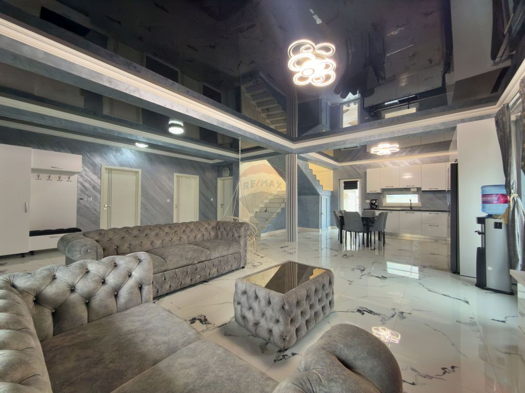 RE/MAX Dynamic vă propune spre vânzare, în reprezentare exclusivă, o vilă situată în localitatea Zimandcuz, județul Arad. Proprietatea are următoarele caracteristici: An construcție: 2025 • Regim de înălțime: P+1E+Pod • Suprafață: 220 mp construiți / 178 mp utili (conform certificatului energetic) • Utilități: curent electric, apă, canalizare • Compartimentare: 5 camere (living + 4 dormitoare – 3 la etaj și 1 la parter), bucătărie (complet mobilată și utilată), cameră tehnică, 3 băi (2 la etaj și 1 la parter), balcon și 2 dressinguri • Încălzire/răcire: pompă de căldură și sistem de încălzire/răcire în pardoseală, cu distribuitor separat pentru etaj și parter; distribuitor de apă caldă/apă rece separat pentru fiecare nivel Dotări și specificații: rolete electrice, loc de grill în partea din spate a locuinței, termostat ambiental în fiecare cameră etc. Materiale de construcție: cărămidă Porotherm 25, izolație pod cu polistiren de 20 cm, țiglă de beton Bramac – gri antracit, polistiren de 15 cm (densitate 100), tâmplărie PVC Kömmerling – profil de 88 mm cu 3 foi de sticlă, interior placat cu rigips, tavane extensibile. Vila se vinde mobilată și parțial utilată. Vă invit la vizionare!