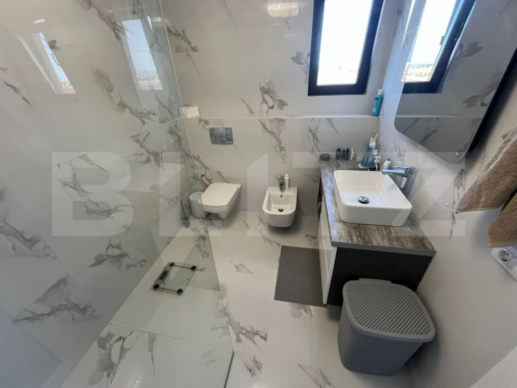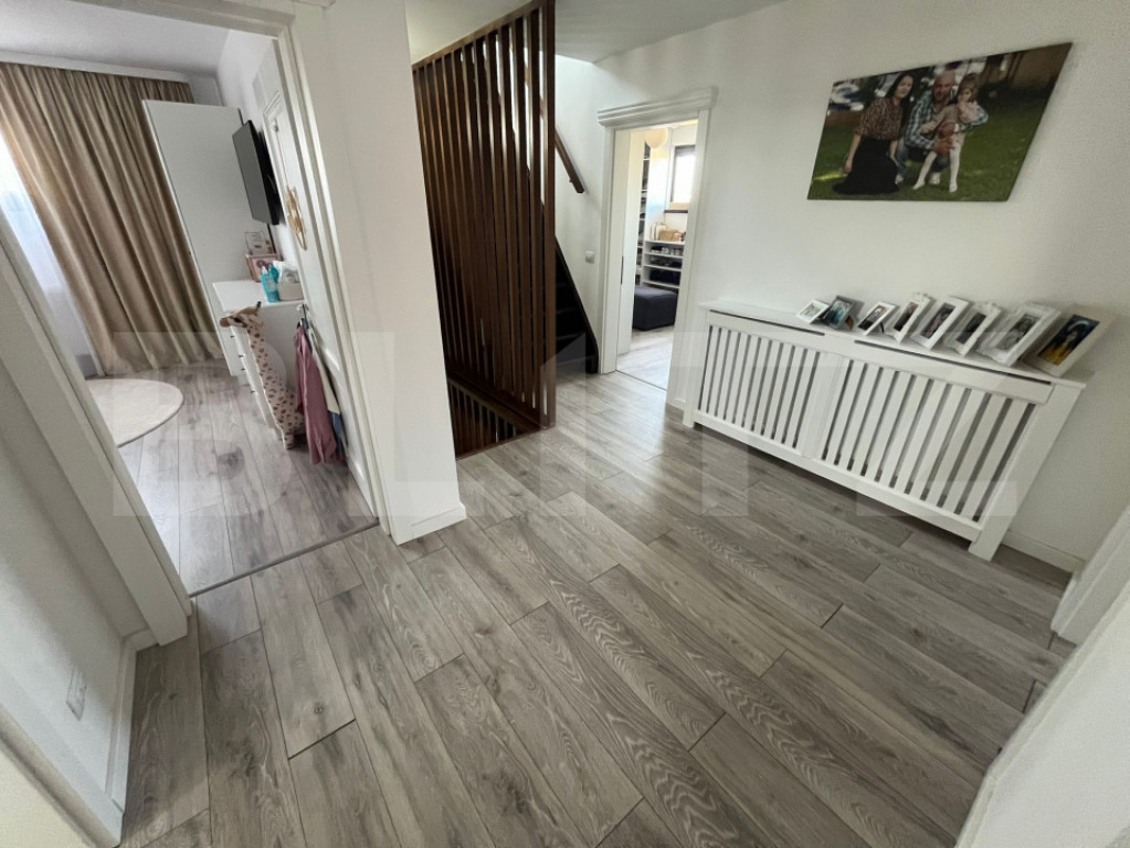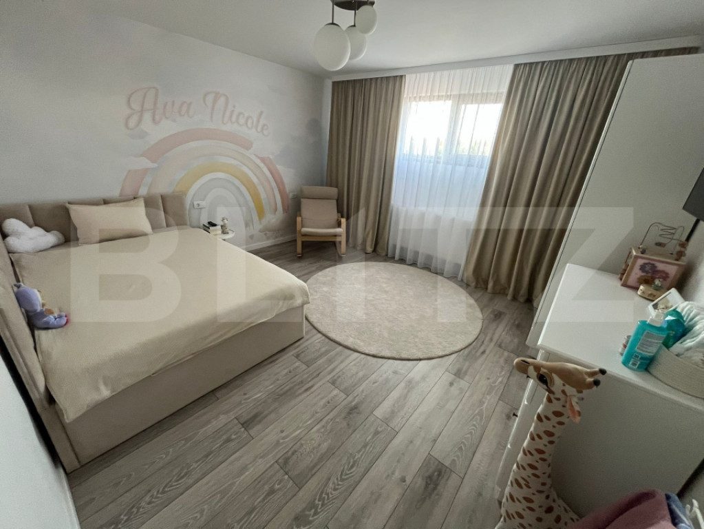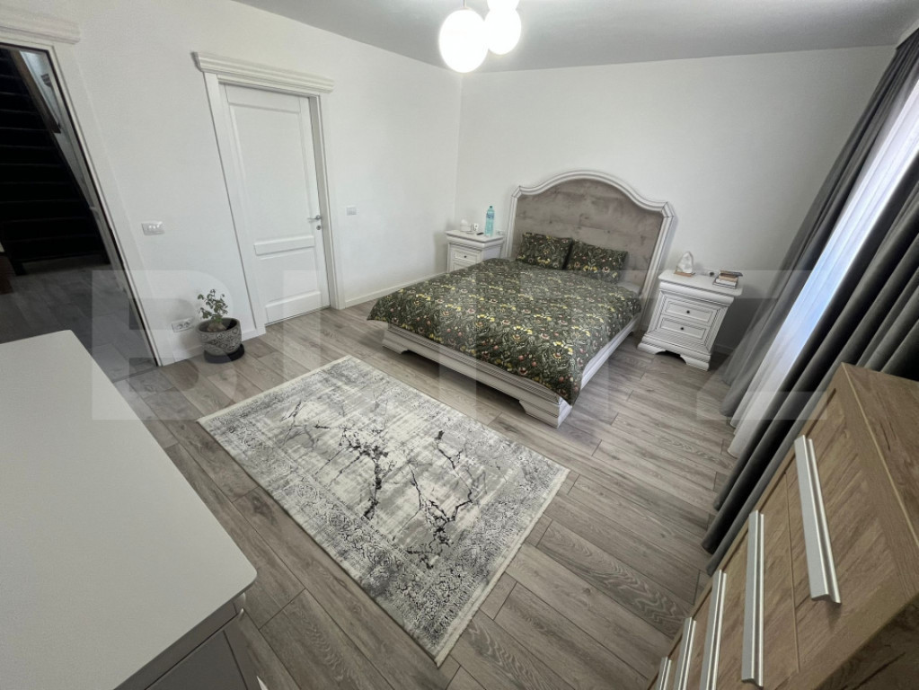 Blitz va propune o vilă modernă de vanzare???? Detalii generale: Suprafață teren: 604 mp Suprafață desfășurată: 293 mp Compartimentare: Parter: 116 mp Etaj: 113,12 mp Mansardă: 64 mp Anexe (74 mp): foișor, sală de forță, baie, garaj Grădină amenajată: 100 mp ???? Compartimentare și dotări interioare: 5 camere (4 dormitoare + living) 3 băi moderne 1 cameră dressing + mansardă amenajată Parchet, gresie, faianță de calitate Mobilă premium pe comandă Uși și ferestre termopan tripan Bucătărie mobilată și utilată complet ⚡ Utilități și facilități: Apă, gaze, canalizare, curent electric Centrală proprie Sistem de supraveghere video + alarmă Intrare separată în garaj Curte amenajată cu leagăn, fire pit, arbuști decorativi, șezlonguri ???? Alte avantaje: Construcție nouă (2023) Posibilitate achiziție cash sau credit Spații de relaxare și funcționale (foișor, sală de sport, garaj) Zonă liniștită, ideală pentru familie ???? Preț: 290.000 € Cod ofertă / ID BLITZ: P152262 Id intern: P152262
