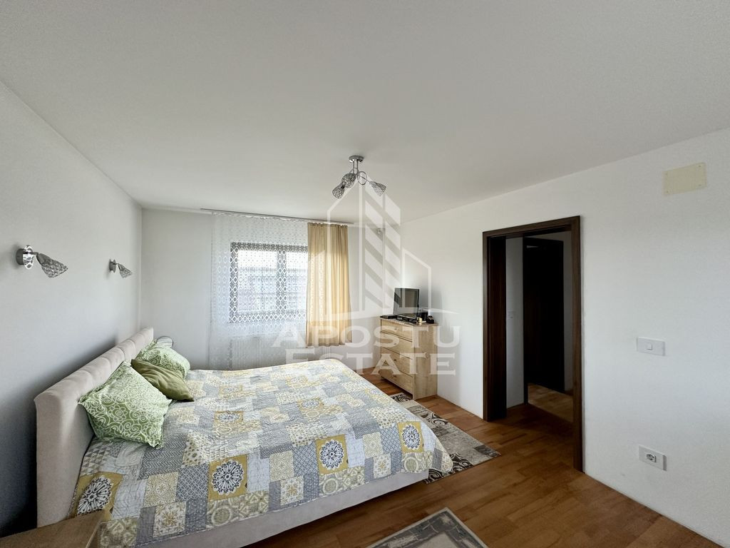 Apostu Estate va propune spre vanzare, in exclusivitate, cu comision zero la cumparator, o casa individuala cu regim de inaltime parter + etaj, situata in Dumbravita, pe strada William Shakespeare, in apropiere de Bulevardul Ion Creanga – o zona linistita, cu acces rapid catre oras. Proprietatea este ideala pentru o familie numeroasa sau pentru cei care doresc confort, spatiu si functionalitate intr-un cadru modern. Detalii proprietate: Suprafata teren: 749 mp Compartimentare: 6 camere An constructie: 2019 Stare: Se vinde mobilata si utilata, in stadiul actual Compartimentare: Parter: Hol de acces Living spatios, open-space, cu bucatarie si zona de dining, cu iesire pe terasa Baie Dressing Camera tehnica Doua dormitoare Terasa secundara Etaj: Dormitor matrimonial cu baie proprie, dressing si terasa Doua dormitoare Dressing Baie Doua terase suplimentare Anexa: Suprafata: 84 mp Include: Doua garaje O camera Bucatarie Baie Avantaje: Zona excelenta din Dumbravita, aproape de Bulevardul Ion Creanga; Casa individuala, ideala pentru familii; Compartimentare practica si spatii generoase; Terase multiple, perfecte pentru relaxare; Anexa versatila – ideala pentru birou, hobby, depozitare sau locuinta aditionala; Se vinde complet mobilata si utilata; Pentru mai multe detalii sau pentru a programa o vizionare, nu ezitati sa ne contactati! Aceasta poate fi noua dumneavoastra locuinta! CP2605585