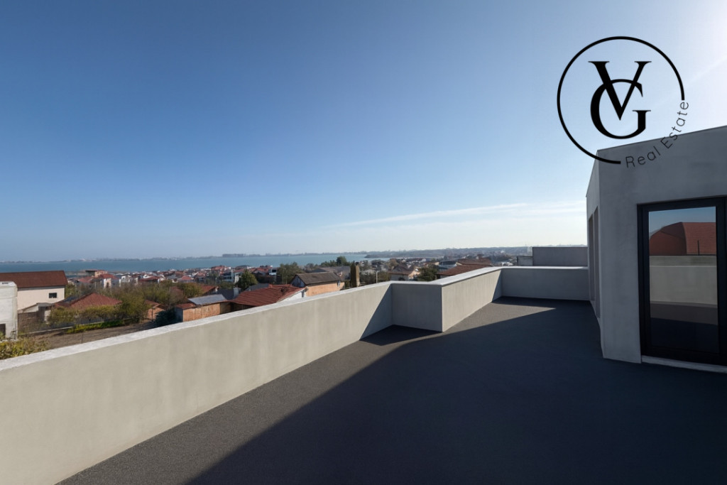 Vă propunem spre achiziție , vila modernă , construcție 2025, cu terasă circulabila cu vedere superbă către lac și stațiunea Mamaia . Regim de înălțime P+1 etaj + terasă circulabila . Parter format din living generos în suprafață de 43 mp, bucătărie închisă 12,5 mp, baie , hol . Etajul este format din 3 dormitoare , 1 dintre acestea este dormitor matrimonial cu vedere spre lac , hol și o baie . Terasă circulabila este în suprafață de 73 mp . Suprafața utilă a proprietății este de 131 mp , suprafața totală de 245 mp, având teren 300 mp . Vila va fi predată finisată, racordată la utilități, pregătită pentru a fi mobilată . Pentru mai multe detalii, vă rog să mă contactați! Id intern: P146072