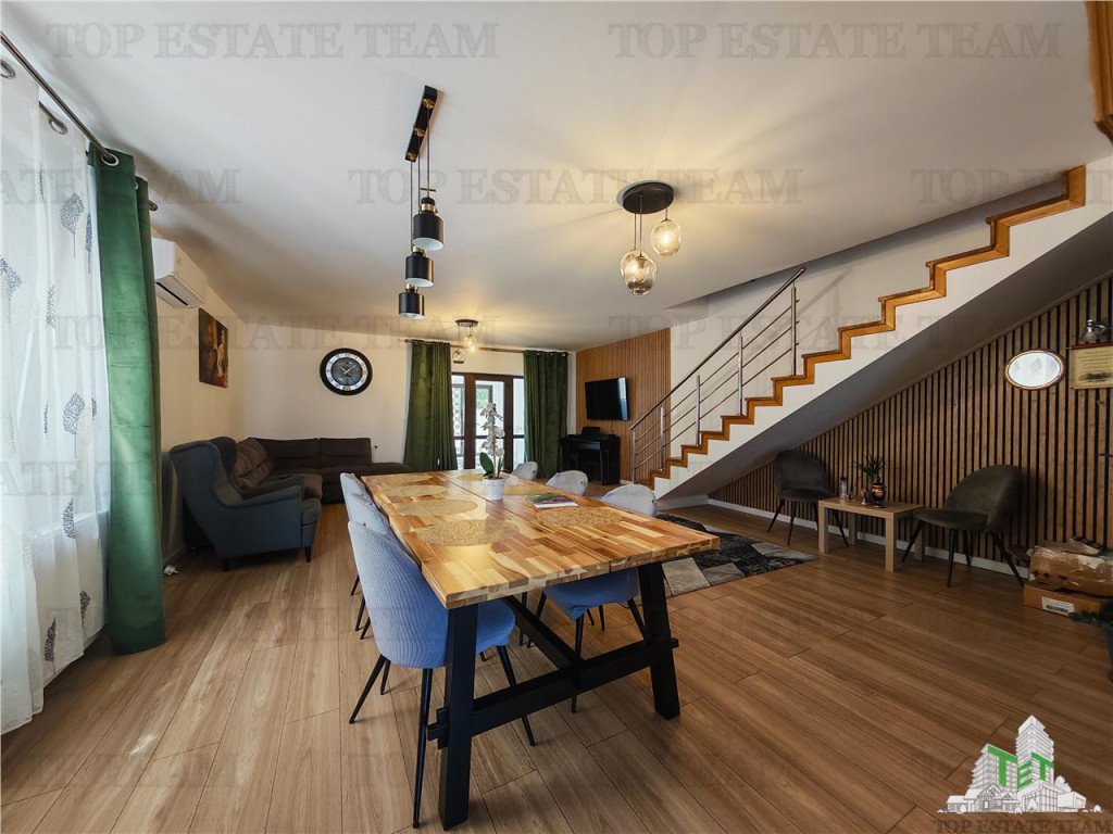Resedinta moderna in Balotesti ndash; spatiu, confort si eleganta pentru intreaga familie Va invitam sa descoperiti o casa conceputa pentru viata de familie, unde functionalitatea se imbina perfect cu confortul si eleganta. Construita pe regim de inaltime P 1 Pod, proprietatea ofera o compartimentare practica si spatii luminoase, gandite pentru a raspunde tuturor nevoilor cotidiene: Parterul surprinde printr-un living generos, o bucatarie spatioasa, baie, dressing si spatii de depozitare. Terasa acoperita devine un loc ideal pentru relaxare sau seri petrecute alaturi de cei dragi. Etajul gazduieste 3 dormitoare confortabile, o baie moderna si doua balcoane ce aduc lumina naturala si deschidere catre exterior. Podul ofera un spatiu amplu de depozitare, usor adaptabil pentru diverse necesitati. Casa dispune de centrala proprie pe gaz si calorifere, iar alimentarea cu apa se face din put. Canalizarea este momentan la fosa septica, insa zona are perspectiva imediata de racordare la retelele publice. Se vinde complet mobilata si utilata, gata pentru a deveni caminul ideal al unei familii care isi doreste sa se mute fara griji. Un mare atu il reprezinta accesul rapid catre punctele cheie ale zonei de nord: Therme, Aeroportul Otopeni, Autostrada A0, Autostrada A3 si zona de business Pipera. Aceasta proprietate reprezinta o alegere inspirata pentru cei care apreciaza linistea, dar doresc sa ramana aproape de oras, intr-o zona aflata in plina dezvoltare. ID intern: TET0020944.