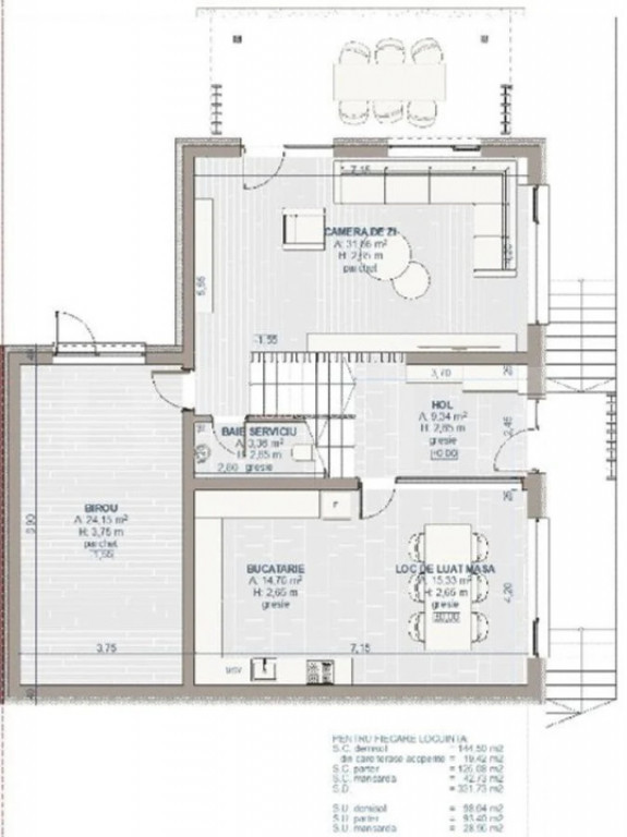 Blitz vă propune spre vânzare o casă cuplată prin garaj, cu regim de înălțime D+P+E+M, situată în zona centrală și urbanizată din localitatea Sălicea. Proprietatea îmbină avantajul unei zone liniștite, cu acces rapid către oraș, și este ideală pentru o familie care caută confort și spațiu generos. Detalii proprietate: -Suprafață construită desfășurată: 332 mp -Suprafață utilă: 245 mp -Teren: 518 mp / casă (1.036 mp total) -Preț: începând cu 275.000 € -Stadiu: finalizată – în curs de intabulare (interior la roșu, cu posibilitatea de semifinisat la cerere) Construcție și dotări: -Încălzire în pardoseală -Hidroizolație la fundație și 3 sisteme de drenaj pentru întreaga curte -Izolație exterioară premium: 15 cm la pereți și 20 cm la mansardă (densitate 100) -Geamuri Salamander tripan (3 sticle) pentru eficiență termică și fonică -Posibilitate de montare pompă de căldură -Drum privat pentru acces Compartimentare: -Demisol: living spațios, bucătărie separată cu zonă de luat masa, hol, baie și birou -Etaj: hol, 2 dormitoare, baie comună, dormitor matrimonial cu baie și dressing propriu -Mansardă: hol, dormitor și baie Această casă oferă un design practic și funcțional, spații generoase și un teren care permite amenajarea unei curți moderne și intime. Este soluția perfectă pentru cei care doresc să se bucure de liniște, aer curat și intimitate, fără a renunța la avantajele proximității față de oraș. Vă invităm la o vizionare pentru a descoperi toate avantajele acestei proprietăți deosebite! Cod ofertă / ID BLITZ: P152699 Id intern: P152699