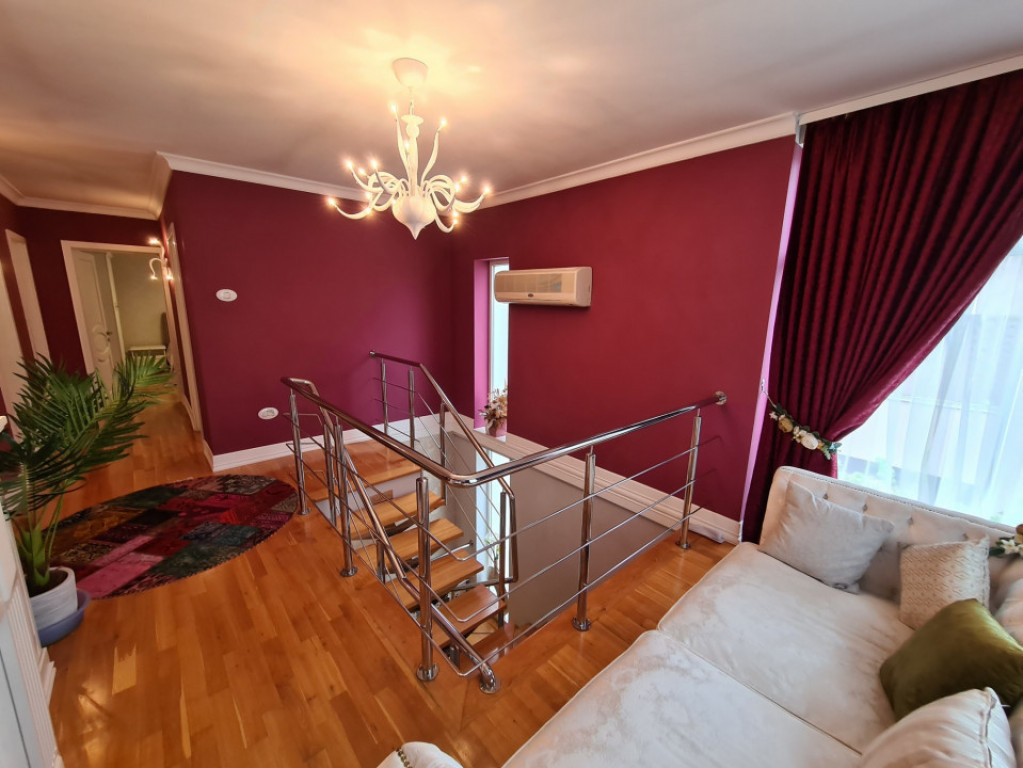 ID/ COD ofertă: P109 Domina Imobiliare vă propune spre închiriere vilă deosebită, cu design modern, datorită calității şi confortului pe care îl oferă, situată în Târgu Jiu, strada Trandafirilor, la intrare în cartier Panduraș - zona Parcului "Coloana Infinitului". Imobilul are un regim de înălţime P+1, beneficiază de o suprafață utilă totală de 170 mp şi se bucură de o compartimentare ideală după cum urmează: - parterul reprezintă zona de relaxare, fiind compus din linving spaţios amenajat cu şemineu, zonă de servit masa, bucătărie, baie şi hol generos, - iar la etaj se regăseşte spaţiul destinat odihnei, reprezentat de 3 dormitoare, un dressing practic şi util, un hol frumos amenajat, baie şi terasă, locul perfect pentru servirea cafelei în dimineţile de weekend. De asemenea, proprietatea oferă şi avantajul unui foișor amenajat în curte, cu grătar şi loc pentru servit masa. Elementele de finisare utilizate la construcția vilei sunt de înaltă calitate, iar printre acestea menționăm: parchetul din lemn natural, gresia şi faianţa, mobilierul, obiectele sanitare, obiectele de iluminat deosebite, bucătăria echipată cu electrocasnice de calitate. Confortul termic este asigurat de încălzirea cu centrală termică și tâmplăria din pvc cu geam termopan. Este un imobil complet din punct de vedere al elementelor de design și utilități, cu finisaje și dotări de calitate, beneficiază de sistem de alarmă, garaj, iar curtea și grădina sunt plăcut amenajate. Din punct de vedere al zonei, se află la intrarea într-un cartier liniştit, în zona Parcului "Coloana Infinitului" şi a Liceului Economic "Virgil Madgearu". Vila se oferă spre închiriere complet mobilată și utilată, fiind pregătită pentru a deveni "acasă" pentru tine, imediat cum se va semna contractul de închiriere. Vrei să vezi mai multe oferte similare? Ne poți contacta la numărul de telefon 0737 800 000 sau pe domina.ro. 5 motive pentru care să alegi DOMINA IMOBILIARE: - 0% comision aplicabil pentru cumpărători și chiriași; - Consultanță GRATUITĂ clienților noștri pentru servicii conexe; - Oferim Promovare GRATUITĂ pentru fiecare vânzător pe diferite site-uri de anunțuri; - Un portofoliu impresionant de proprietăți diverse (garsoniere, apartamente, case/vile, terenuri, spații comerciale, depozite); - Avem cea mai mare bază de date – asta înseamnă că poți fi primul care negociază, alege și semnează contractul ideal. De peste 17 ani, facem totul pentru ca tu să fii fericit! De la noi începe Acasă! Id intern: P109