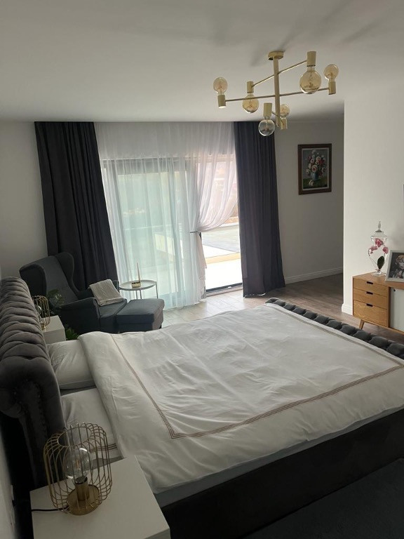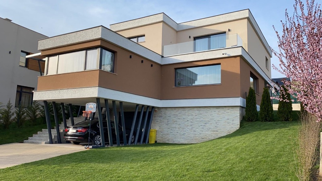 Proprietar, persoana fizica, vand casa 6 camere , 3 bai , design contemporain interior/exterior pe 3 nivele in cartier privat TERRA GRADENS Cluj Napoca , Ultrafinisata , Mobilata si Utilata la cheie ,Piscina exterioara supraterana 7 x 3 metri , CF fara mentiuni , Fara Ipoteca , se accepta si plata cu credit , 0% Comision , NU se adauga TVA !Pretul nu este negociabil , el fiind deja redus . Casa este noua cu suprafata construita de 301 mp pe un teren de 544 mp cu front la strada de 16,7 ml + parcare acoperita de 22 mp + terasa acoperita de 23mp + balcon matrimonial de 12 mp cu balustrade din sticla securizata laminata dubla . Doua terase necirculabile de 100 mp si 20 mp cu posibilitate de amenajare . Spatiu de depozitare de aproximativ 10 mp . Face parte din un cartier privat in stil american , administrat pe baza de regulament intern , cu toate utilitatile facute ( strazi asfaltate , iluminat cartier LED , trotuare , bariera acces , apa, gaz , curent , fibra optica , administrare privata ) cu parc . Zona este extrem de linistita , la o distanta considerabila de strada principala . Proprietatea se afla pe o strada infundata , la capatul acesteia , fara trafic auto ferita de zgomot . Este localizata in zona de nord a orasului Cluj Napoca la o distanta de 5 km de hipermarketul Auchan Iris ( 5 min cu auto ) , 7 km pana la Sensul Giratoriu Marasti ( 10 min cu auto ) 9 km pana la Iulius Mall ( 15 min cu auto ) . Se vinde ultrafinisata , mobilata si utilata cu detalii cum ar fi 3 usi culisante mari REHAU pentru acces terasa si balcon , incalzire in pardoseala toata casa cu 6 zone controlabile de pe telefon cu posibilitate de programare de la distanta . Centrala pe gaz De Dietrich MCR-P 34/39 MI PLUS A+ , cu putere de 34 kw incalzire ( la un necesar calculat de ingineri de 28 kw) si 39 kw apa calda . Instalatia electrica pe 3 nivele individuale cu tablou electric pe fiecare nivel , instalatia sanitara pe nivele cu distribuitoare . Scara interioara placata cu lemn si balustrada din sticla securizata . Sistem de supraveghere video interior si exterior cu aplicatie pe telefon , sistem de alarma cu senzori de efractie si senzori de fum ( in toata casa ) cu alertare pe telefon . Retea de internet + tv pe 3 nivele cu 3 routere , prize de tv+net in fiecare camera inclusiv pe terasa ( stativ pentru tv montat ) si balcon . Sistem de iluminat exterior casa si parcare acoperita LED cu senzori crepusculari pentru maxim de confort si eficienta energetica . Curtea este amenajata cu gazon , sistem de irigatie smart cu aplicatie pe telefon , tuia ( 30 buc ) cu inaltime de 2,5 m . Terasa exterioara acoperita de la parter este cu acces din bucatarie si din living , prin usi culisante finisata cu gresie Marazzi , utilata cu mobilier de exterior . Nu suntem dispusi sa achitam comision de intermediere agentiilor imobiliare ! Planurile proprietatii la cerere prin e-mail .