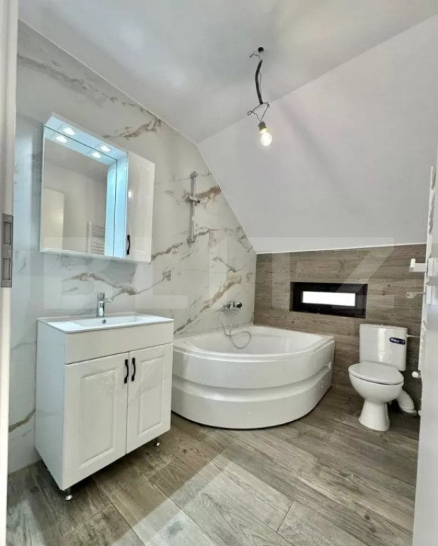 Vă propunem spre vânzare o vilă nouă, individuală, amplasată într-o zonă liniștită și aerisită din Valea Voievozilor, la doar 3 km de centrul orașului Târgoviște. Locuința are o suprafață utilă de circa 120 mp și o suprafață totală de 150 mp, incluzând două terase spațioase. Este racordată la toate utilitățile (apă, gaz, electricitate, canalizare) și beneficiază de acces facil pe drum asfaltat, suprafata teren 400mp Compartimentare: Parter: terasă de acces, hol, casa scării, grup sanitar, living luminos, bucătărie cu zonă de dining, terasă exterioară Mansardă: 3 dormitoare decomandate, hol, baie Finisajele sunt realizate cu materiale moderne și de calitate superioară: Izolație exterioară cu polistiren de 10 cm Tâmplărie PVC cu geam termopan, finisaj culoare Wenghe Gresie și faianță import Spania și Italia Parchet Kaindl (Austria) Uși interioare Bella Casa Scară interioară placată cu lemn masiv de pin Dotări: Obiecte sanitare și baterii Grohe și Kroner Mobilier baie inclus Centrală termică în condensare Ariston O locuință ideală pentru cei care caută confort, liniște și acces rapid către oraș. Pentru mai multe detalii sau vizionare, nu ezitați să ne contactați. Cod ofertă / ID BLITZ: P163190 Id intern: P163190