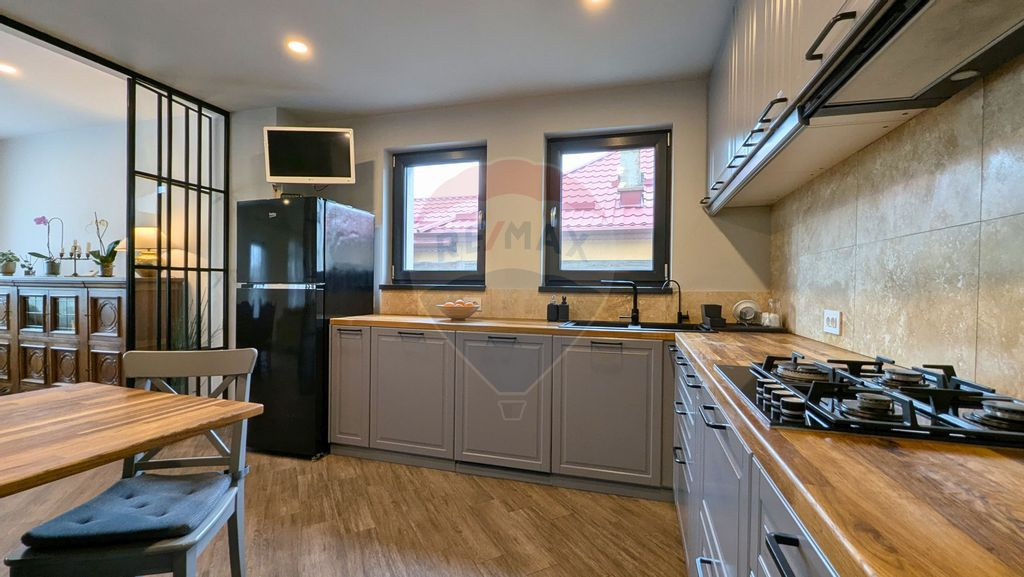 OPEN HOUSE – Balotești | 7 martie | 11⁰⁰–17⁰⁰ Vezi filmare cu locația pe Facebook. Vizionări doar cu programare. Înscriere Open House: apel, WhatsApp / SMS, formular online scaneazâ QR. Construcție nouă | Finalizată 2022 | Ultrafinisată Casă deosebită, una dintre cele mai bine construite din zonă, finalizată în decembrie 2022, cu documentație completă și peste 600 de fotografii din toate fazele construcției, de la trasare până la finisaje. Documentație completă. Localizare & teren Balotești, stradă publică asfaltată (2 benzi), cu trotuare și spațiu verde La ~5 minute de STB, școală, grădiniță, farmacii și magazine Teren 432 mp, deschidere 18 m Curte liberă 312 mp, pavată, cu vegetație matură Loc parcare în curte, porți automatizate Suprafețe & compartimentare Suprafață construită desfășurată: 220 mp Suprafață utilă: 160–190 mp Terasă: 20 mp Regim: Parter + Etaj + Pod (depozitare) Parter: living + dining, bucătărie închisă (cu posibilitate open space), dormitor/birou, baie cu duș, cameră tehnică, debara alimente Etaj: 3 dormitoare, 2 băi, 2 dressinguri walk-in (unul matrimonial), acces pod Structură & construcție Structură pe cadre de beton, fundație conform proiect (săpătură 1,4 m, talpă 90 cm, 10–12 tone fier) Beton turnat din stație, șape elicopterizate Placă beton între etaje 15 cm, 16 stâlpi de rezistență Pereți exteriori: BCA 30 cm + izolație 10 cm + tencuială (total ~48 cm) Pereți interiori: 20 cm Casă tencuită interior/exterior, izolație EPS 10 cm, tencuială decorativă Duraziv Acoperiș & pod Acoperiș Bilka Balcanic, tablă 0,5 mm Șarpantă lemn (grinzi 15×15, 12×10, corzi 10×10) Izolație pod: vată bazaltică 20 cm, tavan izolat cu vată bazaltică 10 cm Tâmplărie & finisaje Ferestre PVC Salamander, tripan 4 sezoane, sticlă performantă, gri antracit Uși intrare + ieșire terasă: aluminiu tripan Bilka, închidere multipunct Uși interior: MDF plin VARIO Pardoseli: ceramică porțelanată în toată casa Confort & instalații Încălzire în pardoseală PURMO – Romstal, cu barieră de oxigen Centrală Viessmann 35 kW în condensare Boiler (conectat la centrala) 200 L pentru bucătărie și băi Curent trifazic 380V, 17 kW în contract Cabluri cupru (2,5 / 1,25 / 6 pentru împământare conform normelor) Utilități & securitate Gaz, apă, canalizare gravitațională Sistem supraveghere Hikvision (exterior) Videointerfon cu deschidere automată Sistem alarmă antiefracție Ajax Exterior Curte și terase pavate Trotuare din beton în jurul casei Gard cu fundație și stâlpi din beton, lemn tratat prin baie de ulei (tehnică japoneză) Mobilare & dotări Bucătărie MDF, complet mobilată și utilată Blat din stejar masiv Mobilier din lemn masiv 3 băi (2 la etaj, 1 la parter) Tot mobilierul și toate dotările rămân
