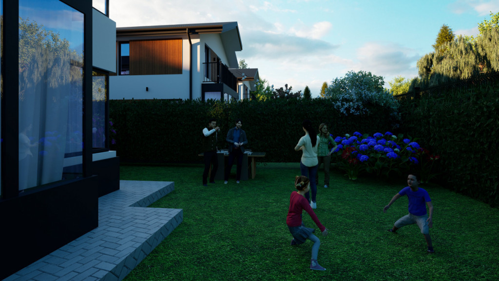 Parter: living cu ferestre tip wintergarden, bucătărie open space, baie, cameră tehnică și o cameră ce poate fi folosită ca birou sau dormitor.