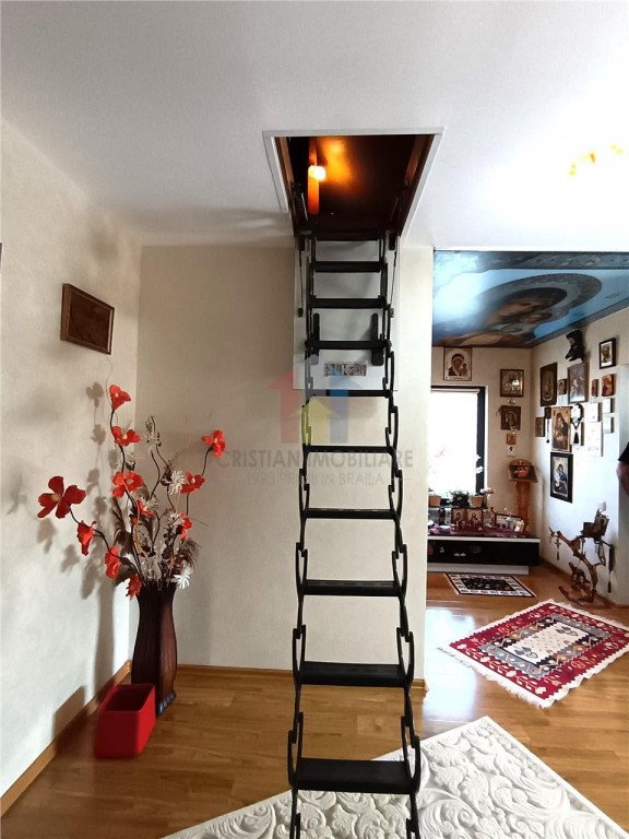 VILA(P M) zona centrala! MOBILATA si UITLATA! *Constructie 2012 *Sup terenului:207mp *Sup construita:110mp/nivel *Deschidere:4 m *Este compartimentata astfel: *P( living, bucatarie, baie, debara) din beton *M(3 dormitoare, baie, dressing) din lemn *Beneficiaza de toate utilitatile *Centrala termica *4 AC *Termopan exterior *Termopan interior *Izolata exterior *Toata casa este zugravita cu STUCCO *Faianta si gresie de actualitate *Parchet *Scara interioara din fier forjat *Tabla lindab *Curte pavata si cu piatra de munte *Gard din fier forjat *Foisor *Beci *Pod(spatiu de depozitare) *Grup sanitar in curte *Cadastru *SE VINDE MOBILATA si UTILATA *MERITA VAZUTA! Cristian Imobiliare - din 1993 Primii in Braila CRS 7105 amp;09