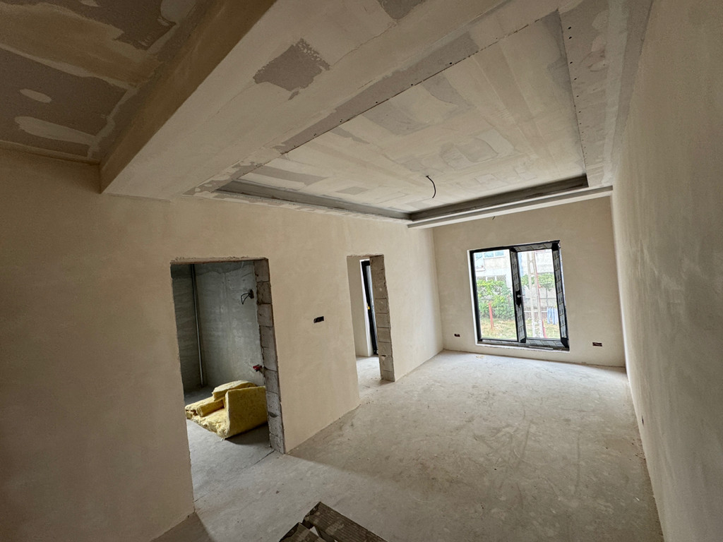 • Pereții au fost tencuiți mecanizat cu ratioglet + 3 mâini de glet iar tavanele sunt din rigips la etaj având și vată pentru izolare extra.