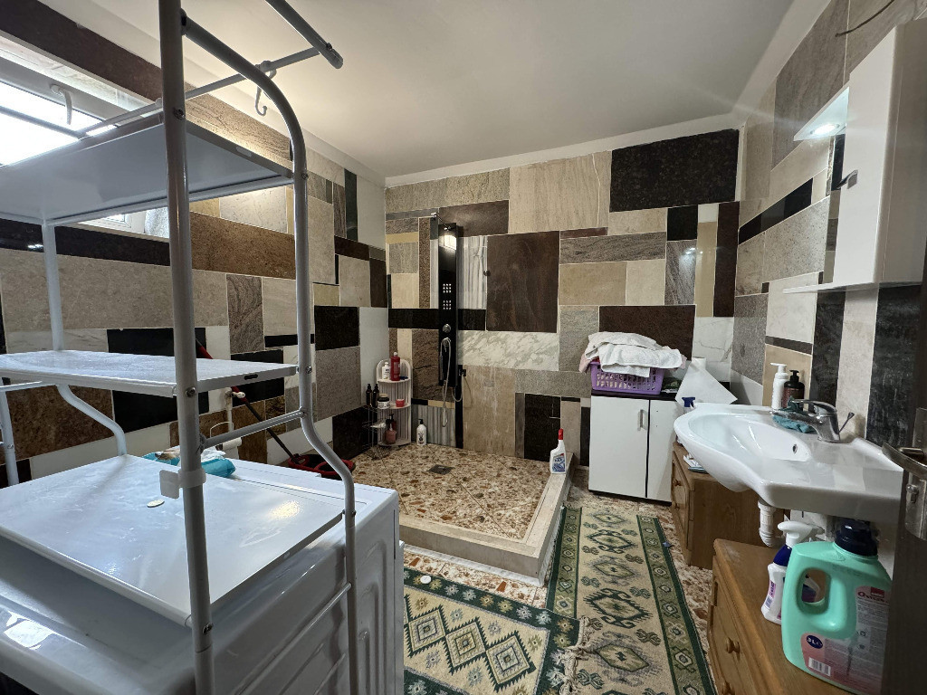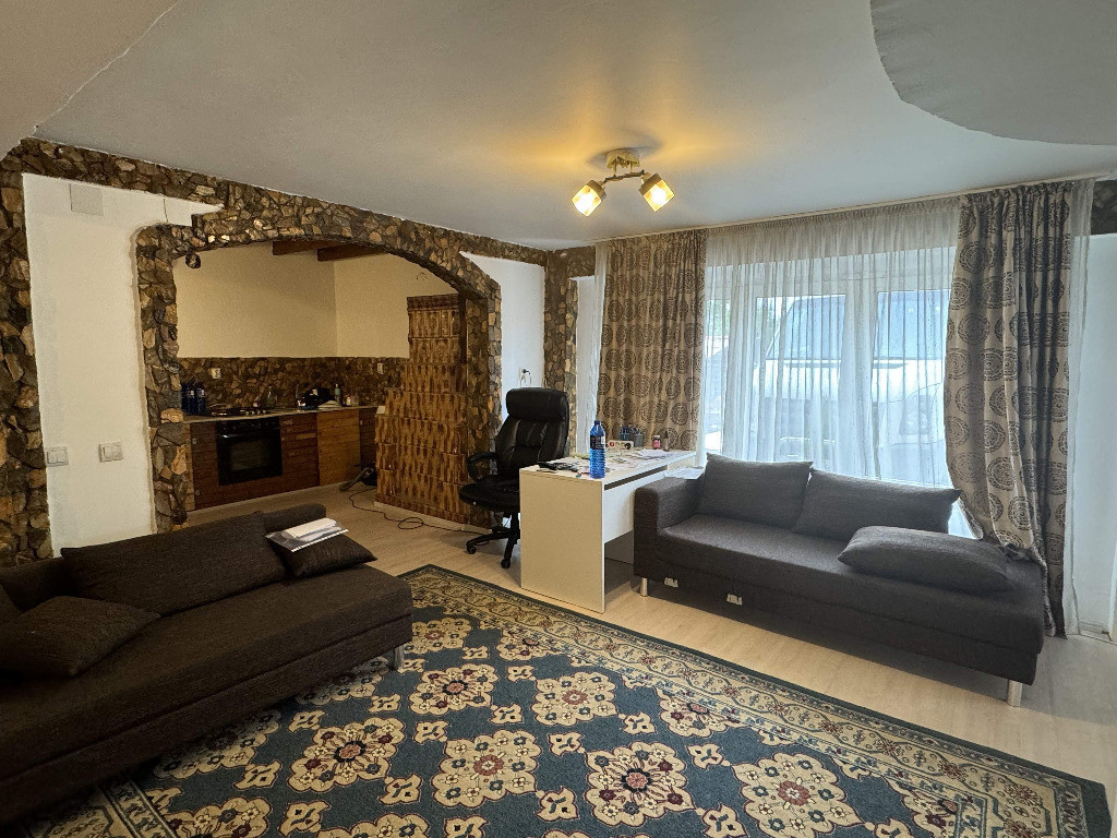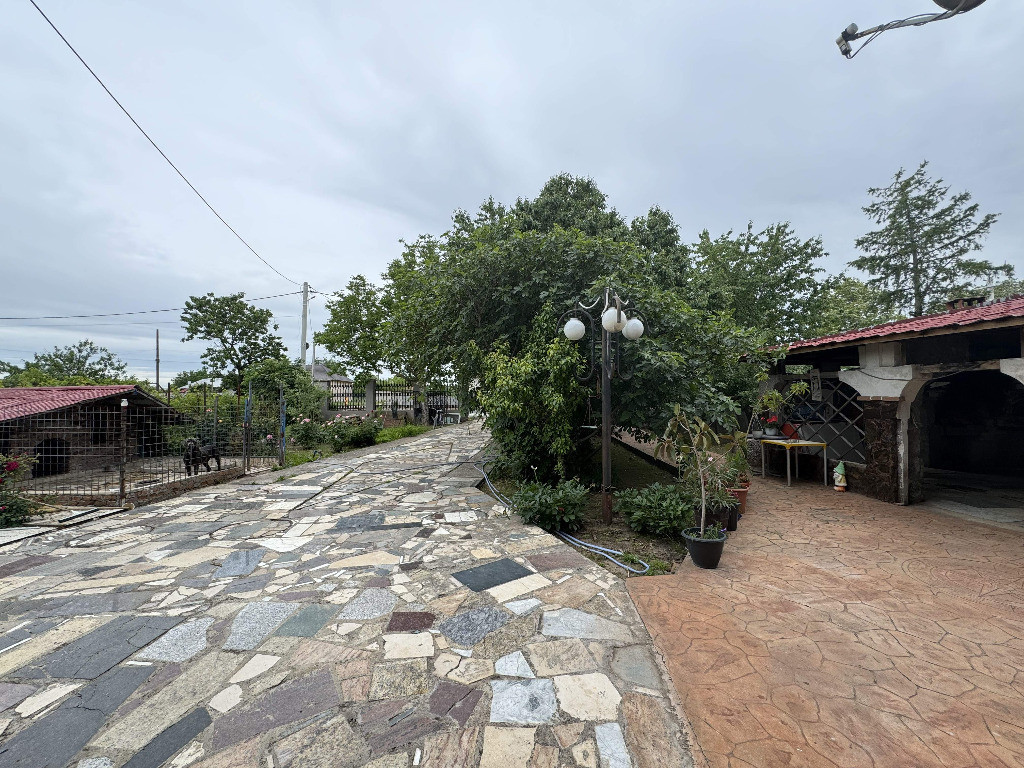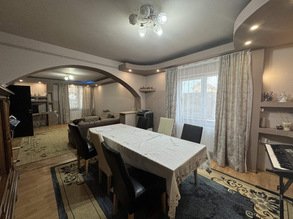 Constructia initiala a fost edificata in anul 1960, iar in anul 2003, aceasta a suportat lucrari ample de extindere, supraetajare si modernizare, in prezent avand o suprafata construita la sol de 305 mp si o suprafata utila, pe cele doua nivele, de cca 230 mp, compartimentarea fiind urmatoarea: PARTER: 1 living, 2 dormitoare, 2 bucatarii, 3 bai, 1 sala de mese, 1 hol si o terasa deschisa de cca 16 mp. ETAJ : 1 living, 3 dormitoare, 1 hol, 1 baie si o terasa deschisa de cca 16 mp. In curte sunt amenajate alei placate cu marmura, piatra naturala si beton amprentat si este amenajat, de asemenea, un foisor cu loc de gratar si servit masa. Alimentarea cu apa se face de la reteaua de alimentare cu apa a localitatii si din sursa proprie (fantana cu pompa), iar pentru apele reziduale este construita o fosa septica. Incalzirea se face cu centrala termica pe peleti in toata cladirea si a fost pastrata si o soba pe combustibil solid, pe zona de parter, bucatarie de vara.