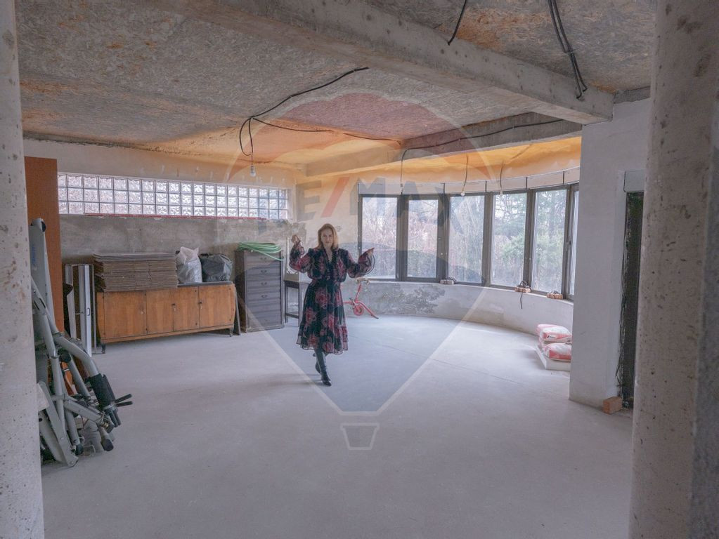 Într-o zonă liniștită și exclusivistă din Corbeanca, se află această vilă spațioasă, cu structură solidă și design modern, ideală pentru cei care caută intimitate, confort și un cadru natural deosebit. Casa este structurată pe subsol, parter, etaj și mansardă, toate nivelele fiind înălțime integral locuibilă. • Subsolul, cu suprafața egală cu amprenta casei, oferă spații generoase pentru sală de fitness, cramă, cameră tehnică și depozitare. • Parterul include un living amplu, zonă de dining cu acces direct către terasă, birou și bucătărie. • Etajul dispune de dormitoare luminoase, cu balcoane și terase mari • mansarda, la aceeași înălțime ca etajul, oferă spațiu suplimentar perfect pentru camere, lounge sau zonă de hobby. În total, vila are 10 camere, dintre care 6 dormitoare, 4 băi, birou și zone de zi spațioase. Construcția este la gri, realizată din materiale premium, cu exteriorul complet finisat, oferind noului proprietar libertatea de a personaliza interiorul după propriul gust. Terenul are o suprafață totală de 802 mp, dintre care 600 mp curte liberă, amenajată cu pomi fructiferi, brazi și vegetație matură. O proprietate cu potențial excepțional, amplasată într-o zonă cu acces facil, dar departe de agitația urbană – locul perfect pentru o familie care își dorește o casă solidă, cu personalitate și spațiu în jur.