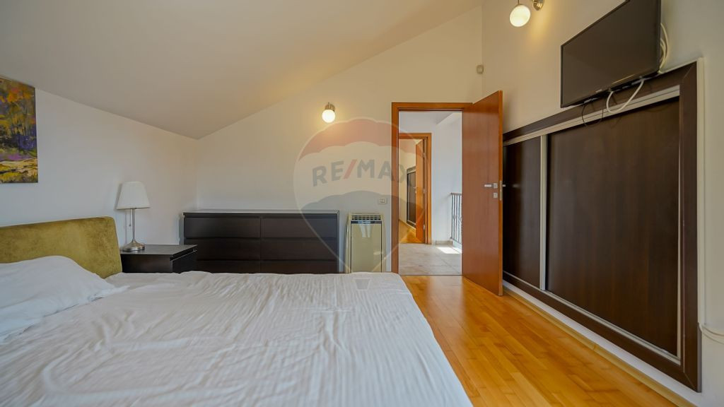 - Etaj: dormitor matrimonial cu dressing, baie și balcon + un apartament privat cu zonă de zi, dormitor și baie proprie.