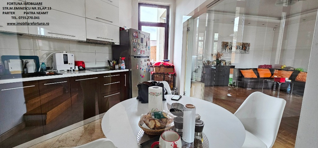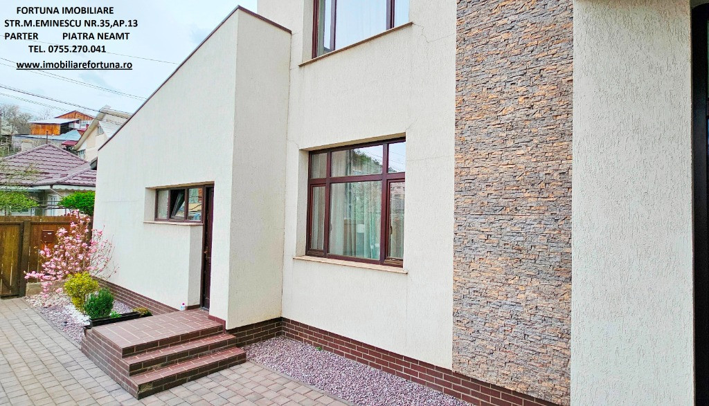 PROPRIETATE DE EXCEPȚIE! VILĂ MODERNĂ P+E, PROIECT MODERN, ZONA 1 MAI, 245.000 EURO Suntem onorati sa va prezentam spre vanzare aceasta proprietate moderna, îngrijită, primitoare, multifuncțională, compusă din suprafața de 368 mp teren, pe care este edificată casa cu regim de înălțime P+E+M, ce se remarcă printr-un proiect aventurier și ingenios, foarte minuțios și inteligent utilizat. Locuința cu suprafața utila desfășurată de 295 mp este edificata în anul 2015, îmbinând elemente de construcție si de finisaje de înaltă calitate: fundație solidă din beton armat, zidarie din caramida, termosistem exterior integral, care, cumulat cu tâmplăria exterioara de termopan in lemn merandi, asigura o protecție termică și fonică performantă,ce asigura un consum mic de energie termică, reflectat în costul facturilor. Este acoperita cu tabla tip Lindab. Oferă un grad înalt de rezistență și siguranță la seisme / incendii, îmbinând ultimele inovații în tehnologia construcției. Casa este compartimentată astfel: Parter : hol - cu iesire in terasa acoperita , baie, bucătarie, debara, living modern, spațios și îmbietor, ce poate fi utilizat ca un spațiu de zi sau pentru primirea celor dragi, dormitor. Este prevazut cu garaj inalt si generos, asigurand spatiu pentru 2 masini. Etaj : hol- cu iesire in terasa mare acoperita,3 dormitoare mari, fiecare fiind deservit de cate o baie. Mansarda este open space, putand fi amenajata si organizata in functie de propriile necesitati. Imobilul se remarcă printr-o configurație și o compartimentare inteligentă, ideal pentru familii active, oferind o serie de avantaje: - îmbină un lifestyle de lux, în concordanță cu ansamblul rezidențial din care face parte; - oferă o priveliște atractiva, încăperi luminoase și deosebit de generoase, puse în valoare de finisajele și dotările de calitate si de ferestrele mari care favorizează lumina naturală; Această proprietate oferă nu doar eleganță și confort la interior, ci și o curte frumos amenajată cu pavele decorative stroher, gazon, flori si arbuști ornamentali, care completează perfect ansamblul. Imobilul beneficiază de sistem de supraveghere video, rețelistică internet/ tv/ telefonie și este conectat la toate utilitățile zonei ( apă, curent, gaz metan ). Această proprietate reprezintă o oază de liniște și confort, atât în interior, cât și în exterior, unde vă puteți bucura de intimitate, aer curat și de frumusețea naturii. Pret 245.000 Euro. Întrucât descrierea acestei proprietati nu poate fi cuprinsă în câteva rânduri, pentru o prezentare detaliată, oferirea unor informații suplimentare și programarea unei vizionări vă invităm la sediul nostru, Fortuna Imobiliare, str. M. Eminescu, nr. 35, ap. 13, parter, lângă fostul Tribunal, tel. contact 0755.270.041 Your comfort is our priority ! Oferta noastră completă o găsiți aici: https://imobiliarefortuna.ro/