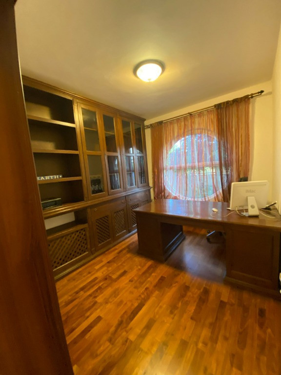 Zona Pipera, Iancu Nicolae, avem placerea sa va prezentam spre inchiriere,. O Vila, cu suprafata de 245 mp un teren de 435 mp si este structurat astfel: suprafata la sol ocupata este de 118.28 mp ramanand astfel o suprafata de aproximativ 320 mp teren liber alocat astfel: Piscina ,gradina spatiu verde , iaz cu sistem aerare apa pentru pesti exotici, loc parcare auto 2 masini, cale de acces intrare secundara,loc pubele gunoi menajer, curte interioara spate terasa acoperita-si spatiu destinate bbq relaxare. Frontul stradal este 15m si are poarta acces auto automatizata si poarta acces pietonal. accesul se face prin doua intrari una principala si una secundara, asistate de interfon si yala electromagnetica cu cartela de acces si supraveghere video. Vila are sistem de alrma antiefractie, incendiu si inundatie, interfon smart, aer conditionat cu functie de incalzire si dezumidificare, sistem protectie supratensiune si diferentiala priza 380v incarcare auto electrica ,catv, sistem receptie satelit,telefon, internet lan si wi-fi,sistemul de incalzire si apa calda este propriu asigurat de o centrala termica pe gaz ampalasat in camera tehnica separata de spatiul locativ unde se afla si instalatia de dedurizare apa .(apa este asigurata din sursa proprie respectiv put forat ) Parter Hol acces principal 17,3mp , Living cu loc de luat masa supratafa de 47 mp impartit in 9,3 mp loc de luat masa si 37,63 mp loc canapele masa tv livingul are si un semineu clasic ce functioneaza cu lemne-focar deschis protejat de parascantei , hol acces etaj si grup sanitar 1.5mp ce deserveste parterul , camera de zi- birou (12,7mp)-poate avea destinatia si de dormitor, bucatarie deschisa (14,7mp) care are integrata si o camara depozitare alimente cu aerisire naturala 2,2mp- complet mobilata si utilata. bucataria este utilata complet , respectiv combina frigorifica incorporata in mobilier, masina de spalat vase, pilita electrica vitroceramica,si pe gaz , cuptor electric, hota cu filtre carbon-miros si grasimi si evacuare exterioara, bara accesorii gatit.cuptor microunde, filtru cafea, fierbator apa, prajitor paine,espress-or.sistem iluminare blat lucru cu led.masa cuptor gatit cu aburi. Spatiu amenajat pentru masina de spalat rufe si uscator cu spatiu de depozitare inchis. Etaj La etaj se afla 3 dormitoare toate avand balcon , un dormitor este matrimonial in suprafata de 26.64mp avand si un grup sanitar propriu 5,36mp . al doilea dormitor este in suprafata de 21,43mp si are un balcon de mp cu vedere la piscina si gradina , al treilea dormitor este in suprafata de 14 mp si are un balcon de 5,10 mp celelalte doua dormitoare au un grup sanitar 4,37 mp cu acces din hol 12.54 mp .la etaj mai este si o terasa cu acces din hol 7,8 mp comuna celor 3 dormitoare. La mansarda se afla un spatiu deschis aproximativ 80mp cu destinatia spatiu de depozitare, In proximitate : Lycée Fran ais Anna de Noailles Cambridge School of Bucharest Japanese school in Bucharest British School of Bucharest International Maarif Schools of Bucharest Școala Americana, Pentru mai multe informatii,sau pentru a stabili o vizionare,nu ezitati, a ne contacta!