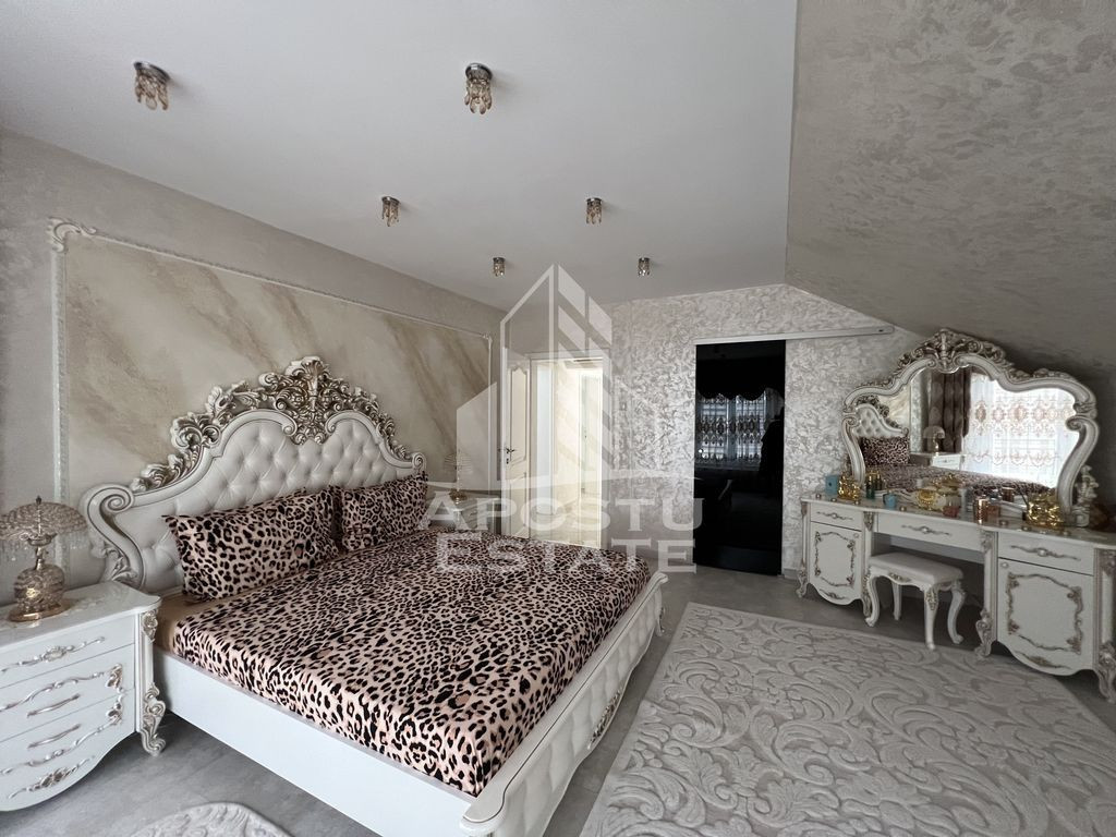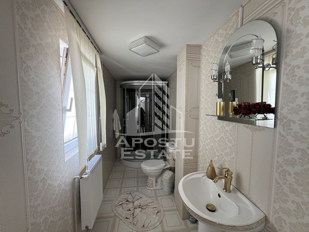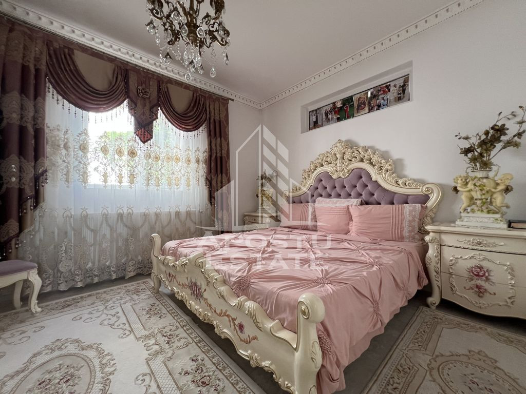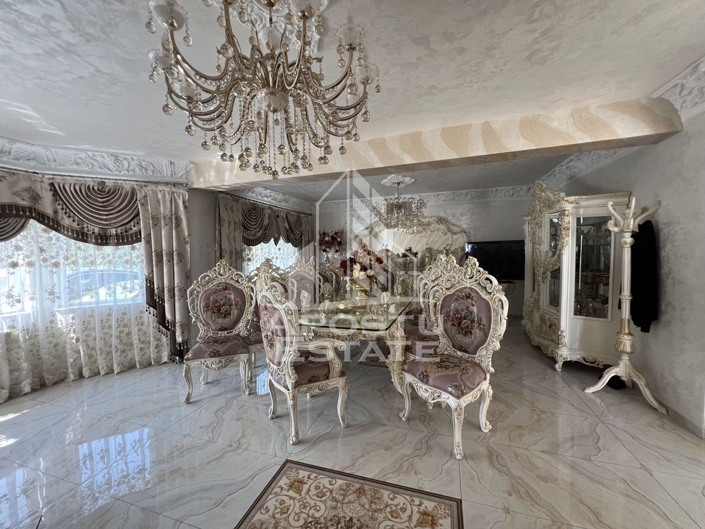 Apostu Estate va ofera spre vanzare o vila deosebita, finisata clasic cu finisaje de lux, extrem de bine intretinuta, in zona foarte buna, cu statie de tramvai si autobuz in fata casei. Casa are o curte generoasa in fata casei amenajata cu parcare pentru 5-10 locuri, iar in spatele acesteia intreaga zona este amenajata ca si spatiu de relazare si include o piscina de 5/10ml cu adancime 1,5/2m, zona lounge, barbeque. Intreaga zona placata cu gresie speciala pentru zone umede. Finisaje deosebite, spatii generoase, dotari complete pentru confort maxim. Casa este situata intr-o zona foarte buna, cu accesibilitate spre zone de interes si statii de tramvai si autobuz chiar in fata casei Compartimentare: Parter: - living si dining open space - dormitor - bucatarie inchisa - baie cu dus - casa scarii - garaj Etaj: - 3 dormitoare - dressing - baie spatioasa - 2 balcoane - hol Detalii: - locatie - zona Fratelia - suprafata utila - 260 mp - teren - 500 mp - pret - 385.000 euro Pentru detalii va stau la dispozitie cu mare drag! Laura Szime Contact - 0732.402.257