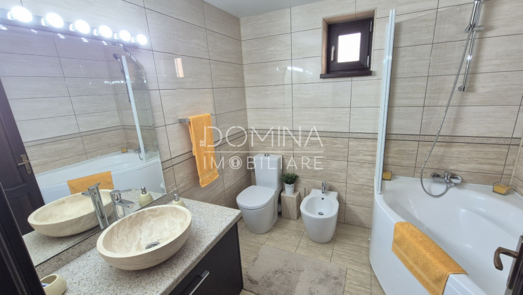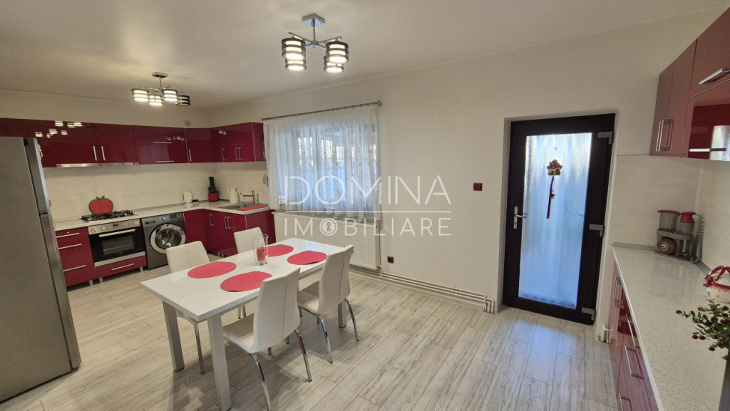 Vilă modernă - P+M -Târgu Jiu – Cartier Primăverii - strada Tudor Arghezi! Domina Imobiliare propune spre vânzare vilă deosebită, construită în anul 2015, din cărămidă, situată într-o zonă liniștită din Târgu Jiu, strada Tudor Arghezi – Cartier Primăverii. Proprietatea impresionează prin designul modern, finisajele de calitate și spațiile luminoase, fiind ideală pentru o familie care își dorește confort, intimitate și un stil de viață relaxat. Caracteristici ale casei: Regim de înălțime: Parter + Mansardă Suprafață utilă: 189 mp Teren: 570 mp, cu front stradal de 18 m.l. Compartimentare: living, 3 dormitoare spațioase, 2 băi moderne, 2 dressing-uri, bucătărie generoasă, hol, 2 balcoane și garaj integrat cu ușă acționată electric. Dotări și finisaje: - granit, gresie, faianță, parchet laminat - tâmplărie PVC cu feronerie QFort și geam tripan - încălzire cu centrală termică - mobilier și electrocasnice în stare foarte bună - spații amenajate cu gust, stil modern și luminos - scară interioară placată cu granit si balustradă din fier forjat - izolație exterioară cu vată bazaltică de 10 cm - tencuială decorativă cu fibră carbon Utilități: Casa este racordată la toate utilitățile: apă, canalizare, gaz, energie electrică și dispune, suplimentar, de fântână. Exterior: - Curte frumos amenajată - Terasă acoperită perfectă pentru relaxare - Spațiu verde generos, ideal pentru familie și activități outdoor. Casa este înconjurată de un gard solid, zidit și finisat cu tencuială decorativă, partea frontală fiind placată cu travertin și completată cu inserții metalice, iar porțile de acces sunt acționate electric. O casă modernă, îngrijită și primitoare, situată într-o zonă excelentă! Perfectă pentru cei care caută confort și liniște, dar doresc în același timp acces rapid la oraș. Casa se oferă spre achiziție mobilată și utilată! ID/COD ofertă: P1214 Vrei să vezi mai multe oferte similare? Ne poți contacta la numărul de telefon 0737 800 000 sau pe domina.ro. Id intern: P1214