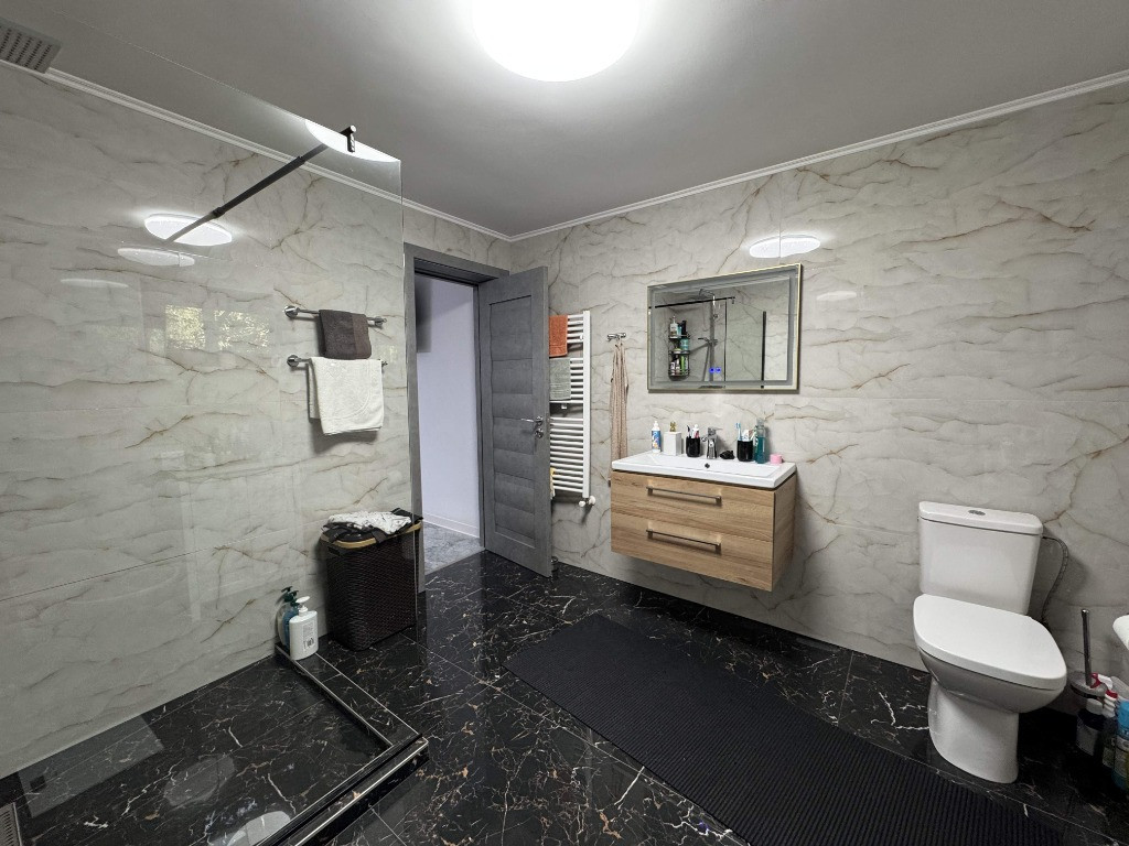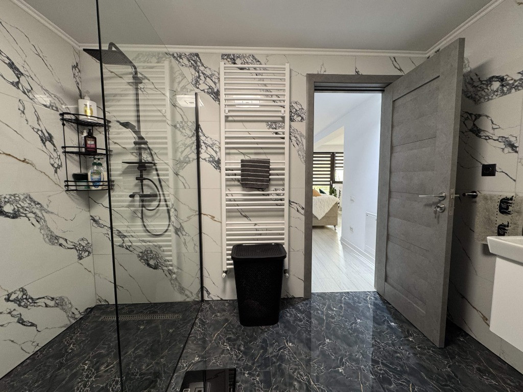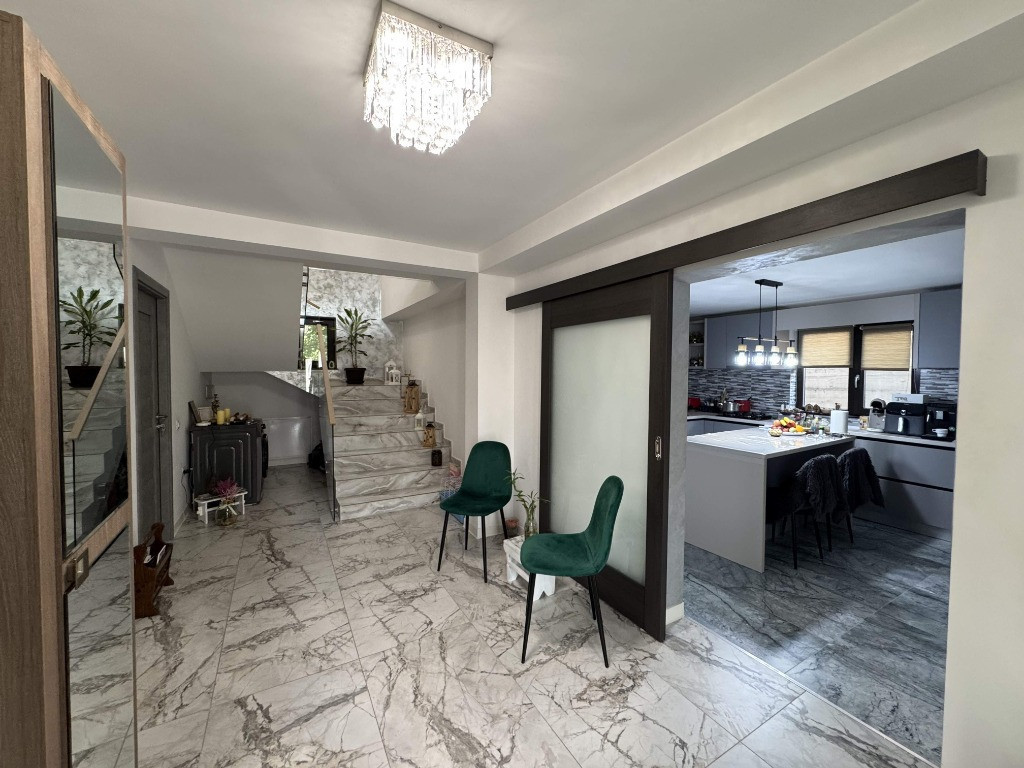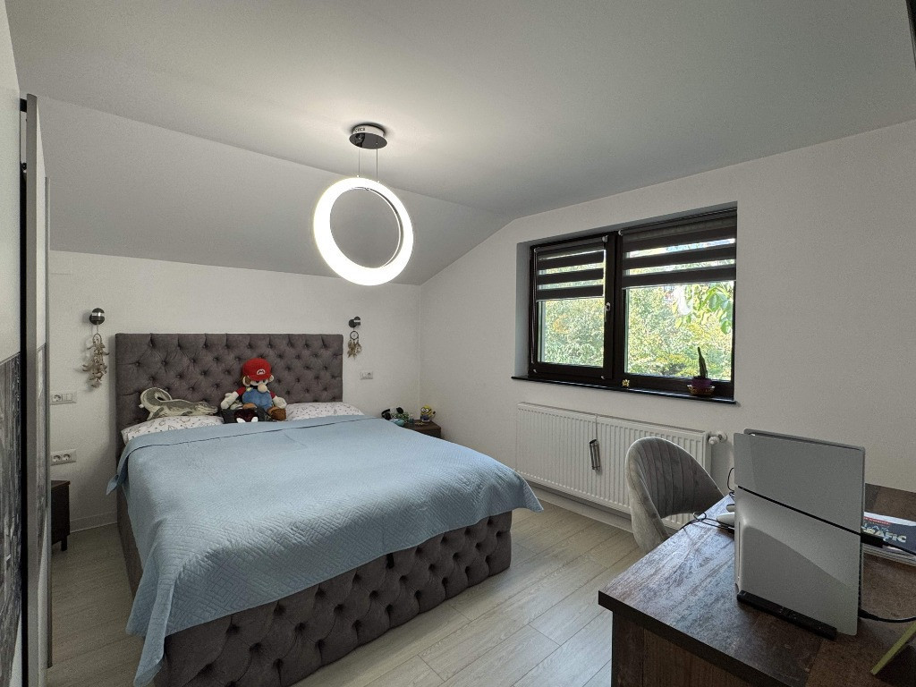 Vila P+M este construita in anul 2019, pe un teren in suprafata de 741 mp., cu o deschidere foarte generoasa, de 28 ml. si este situata in zona Palatului de Justitie, considerata ca fiind cea mai apropiata zona cu locuinte tip vile, de centrul orasului. Terenul este imprejmuit cu gard pe fundatii si stalpi din beton cu zidarie din boltari si porti din fier, cu sistem de inchidere centralizata, cu telecomanda. Structura casei este pe stalpi si fundatii din beton armat, realizate la o adancime de 1,5 m, si inchideri cu zidarie din caramida porotherm, planseu din beton, este acoperita cu tigla si este izolata la exterior cu polistiren de 12 cm. Finisajele exterioare sunt la stadiul de gri, in sensul ca mai sunt necesare decorativa si placarea scarilor de acces. Finisajele interioare sunt realizate integral, gresia, parchetul, zugravelile sunt cu materiale de foarte buna calitate, tamplaria este salamander, tripan, 7 camere, mana curenta la casa scarii si inchiderile la balcoane sunt din sticla securizata. Suprafata construita la sol este de 159 mp, suprafata desfasurata de 284 mp, iar suprafata utila totala este de 225 mp, fiind distribuita astfel: PARTER - suprafata utila de 125 mp. si se compune din: living room, 2 dormitoare, bucatarie, baie, casa scarii + hol + GARAJ cu usa automatizata. MANSARDA - suprafata utila de 100 mp. si se compune din: living room, 2 dormitoare, baie, un dresing, hol + casa scarii si 2 balcoane. Locuinta este racordata la sistemele de alimentare cu gaze, apa potabila, canalizare si energie electrica ale orasului, iar incalzirea se face cu centrala termica proprie pe gaze, la parter fiind realizata integral prin pardoseala, iar la etaj cu calorifere. Analizand toate informatiile de mai sus, precum si urmatoarele aspecte : pretul pe mp, atat la constructie, cat si la teren, care in zona are o pondere in pretul total de peste 250 EURO/mp; imobilul se vinde cu intreg mobilierul, achizitionat de la MOBEXPERT si LEM'S si electrocasnicele existente, toate fiind foarte bine intretinute; suprafata terenului, forma lui si dimensiunile laturilor, permit construirea a inca unei locuinte este usor de remarcat ca, pe ansamblu, pretul proprietatii este unul justificat si potrivit pentru un cumparator care are nevoie de acest tip de proprietate si poate utiliza eficient si restul terenului.