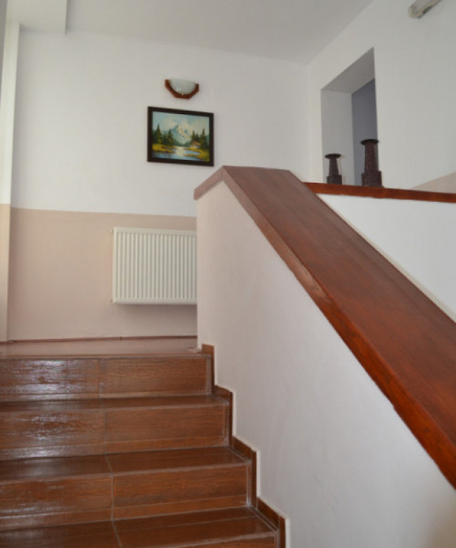 Smart Imobiliară vă propune spre vânzare o vilă elegantă situată chiar în centrul stațiunii Poiana Brașov, una dintre cele mai căutate destinații montane din România. Proprietatea oferă un ambient primitor și confortabil, fiind ideală atât pentru rezidență proprie, cât și pentru investiție turistică (pensiune, chalet, boutique hotel). Vila este dispusă pe mai multe niveluri și include: 6 camere duble și 1 apartament cu 2 camere, toate dotate cu baie proprie. Compartimentare: Nivel 1: • Cameră 1: apartament cu 2 dormitoare, baie, living și terasă • Nivel 2: • Cameră 2: cameră dublă, baie și balcon • Cameră 3: cameră dublă, baie și balcon • Cameră 4: cameră King-size, baie și balcon • Nivel 3: • Cameră 5: cameră dublă cu baie • Cameră 6: cameră dublă cu baie • Cameră 7: cameră King-size, baie și balcon • Nivel 4 (mansardă): • Spațiu deschis + baie Vila dispune de: Living spațios cu șemineu Bucătărie complet utilată Terasă cu priveliște naturală superbă Localizare excelentă, în apropierea pârtiilor de schi și a traseelor montane – o zonă ideală pentru relaxare, sport și turism pe tot parcursul anului. Proprietatea se vinde complet mobilată și utilată, exact ca în fotografii, gata de utilizare din prima zi. Pentru mai multe detalii si informatii nu ezitati sa ne contactati si sa precizati ID-ul 18043 Prețul de promovare este de 650.000€ /negociabil în funcție de condițiile stabilite împreună cu proprietarul. Pentru mai multe detalii despre această proprietate și pentru programarea unei vizionări, vă rugăm să contactați consultantul responsabil. Smart Imobiliare vă oferă consultanță completă pe tot parcursul tranzacției, de la prima vizită și până la predarea cheilor. Id intern: P18043