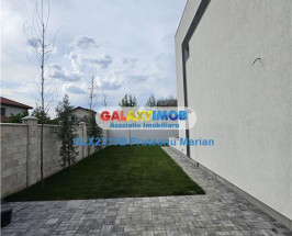 Gradina mirifica , amenajata cu gazon de tip rulou, poarta automatizata la intrare in vila moderna ,fiind foarte aerisita in vecinatate cu oaza de verdeata, avand strada de peste 9 m latime cu case individuale in vecinatate.