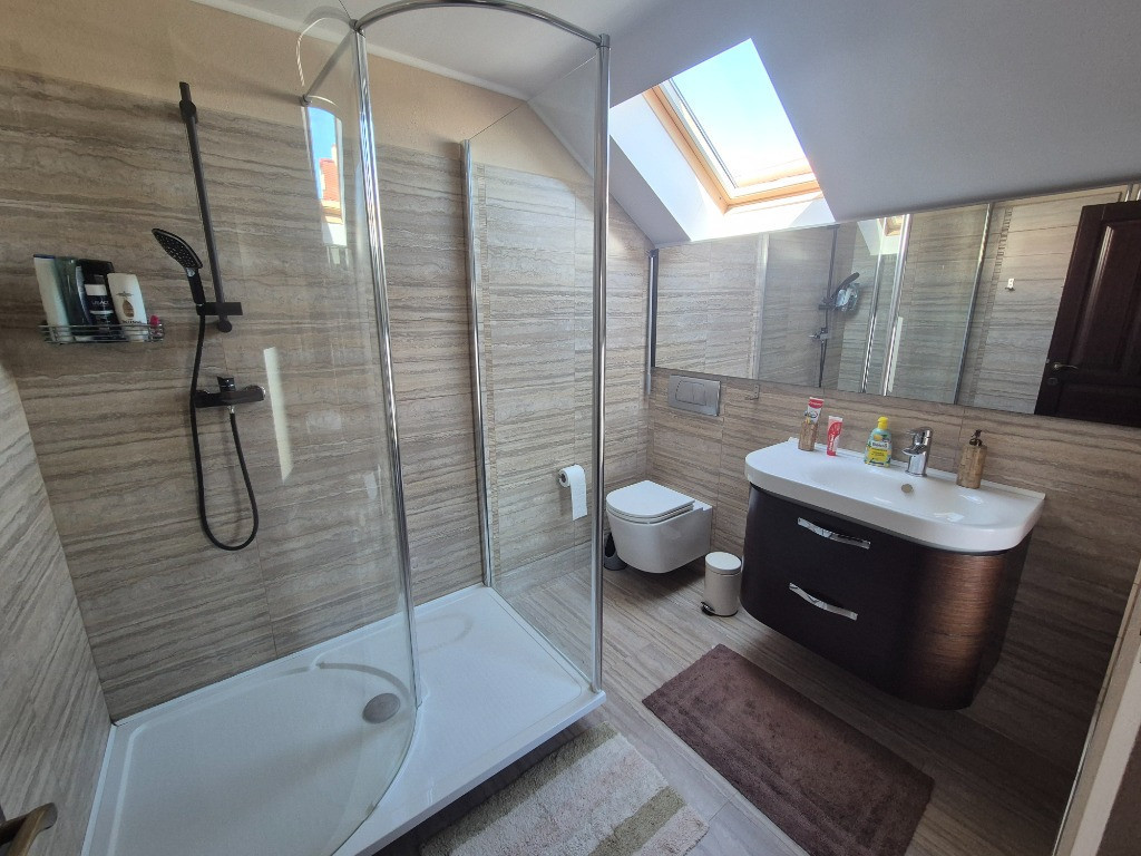 Consecvent Imobiliare are plăcerea de a vă prezenta spre vânzare o vilă impresionantă, destinată celor cu gusturi rafinate, construită cu materiale de cea mai înaltă calitate și gândită pentru confort și eleganță. Detalii principale: Suprafață utilă: 250 mp Teren: 1.093 mp Garaj 34 mp pentru 2 mașini, cu acces direct în interior Terase generoase: 50 mp la parter si 64 mp la etaj Vila se oferă mobilată și utilată conform fotografiilor atasate Compartimentare elegantă si extrem de eficienta: Parter: hol de intrare, dormitor/birou de 16 mp cu spații de depozitare și baie proprie, living spațios cu loc de luat masa și bucătărie de 52 mp, chicinetă cu acces în cămară de 16 mp, terasă de 40 mp cu acces din living și bucătărie și baie de serviciu cu access din terasa. Etaj: 3 dormitoare generoase (16-24 mp), fiecare cu dressing și baie proprie, acces pe terasele private; spălătorie de 9 mp și o cameră multifuncțională de 28 mp (jocuri, activități sau depozitare). Detalii premium și confort modern: Încălzire în pardoseală la parter și calorifere la etaj, prin pompă de căldură Panouri solare, eficiență energetică ridicată și costuri reduse Finisaje de înaltă clasă: lemn natural în parchet și uși interioare, piatră decorativă cu impact vizual deosebit Construcție solidă din cărămidă Porotherm, fundație de 2 mp, concepută pentru locuire permanentă Curte și facilități exterioare: Curtea impresionantă oferă spațiu verde generos, spații de depozitare în fața și spatele casei, duș exterior și bucătărie de vară închisă, ideală pentru mese în familie și petreceri cu prietenii. Această proprietate unică este mai mult decât o casă – este o reședință elegantă, eficientă energetic, concepută pentru un stil de viață rafinat fiind alegerea perfectă pentru cei care apreciază eleganța, confortul și calitatea fără compromis. Contactează Consecvent Imobiliare pentru mai multe detalii, planuri și vizionare! Vă oferim consultanță completă, asistență juridică și suport pentru întreaga tranzacție, până la semnarea actelor notariale, iar comisionul pentru cumpărător este 0%.