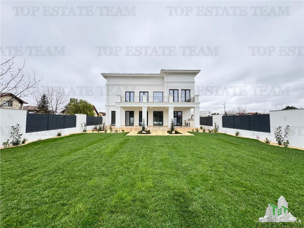 Vila individuala premium, cu arhitectura moderna si tehnologii avansate, este disponibila la vanzare intr-o zona exclusivista. Proprietatea se preda la cheie, cu finisaje incluse in pret, iar noul proprietar isi poate personaliza interiorul conform preferintelor, in bugetul alocat. Casa beneficiaza de incalzire in pardoseala si sistem de incalzire-racire prin tavan, asigurand confort optim in orice sezon. Este echipata cu pompa de caldura cu eficienta energetica ridicata si sistem de climatizare Daikin HVAC pentru fiecare nivel. Curtea este complet amenajata, cu spatiu verde, alei pavate si sistem automat de irigare prin aspersoare. La cerere, se poate amenaja o piscina, contracost. Compartimentare La parter se afla livingul generos, zona de dining, bucataria inchisa, un birou, un dormitor, o baie, holul principal si doua terase, atat in fata, cat si in spatele casei. Etajul este dedicat zonei de noapte si include trei dormitoare matrimoniale, fiecare cu baie proprie, dressing si terasa. Mansarda ofera o camera hobby, o baie si o zona de spalatorie-uscatorie, ideala pentru functionalitate maxima. Date tehnice Suprafata construita este de 600 mp, iar suprafata utila de 530 mp. Terenul are 1000 mp, cu un front stradal de 18 metri. Structura este din beton, regimul de inaltime este P E M, iar anul finalizarii este 2025. Vila dispune de 8 camere, 5 bai, o bucatarie si trei terase. Aceasta proprietate reprezinta alegerea perfecta pentru cei care cauta o vila de lux, o casa moderna cu finisaje la alegere, o vila individuala cu teren mare si curte amenajata, intr-o locatie premium.