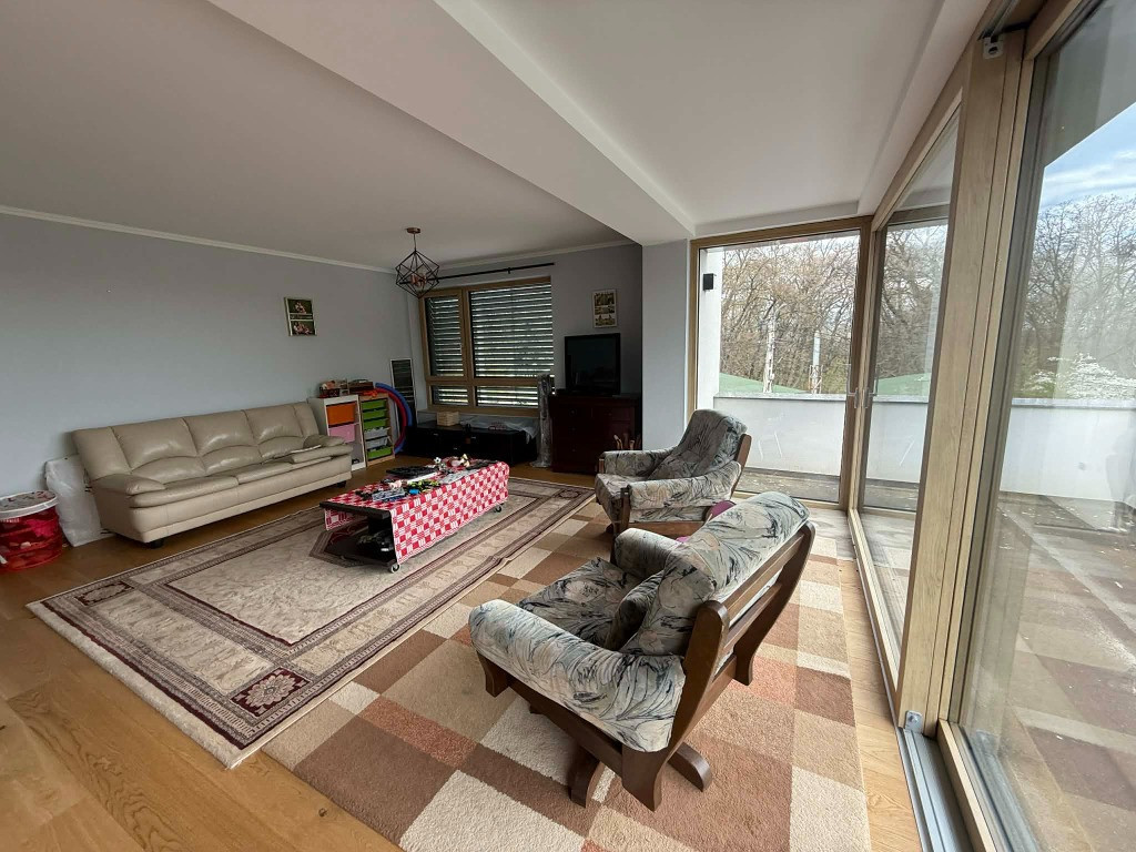 Vilă exclusivistă în Făget – rafinament, natură și liniște absolută Într-una dintre cele mai apreciate și căutate zone rezidențiale din Cluj-Napoca, Făget, unde aerul curat, liniștea și peisajul natural definesc stilul de viață, vă prezentăm o vilă cu adevărat specială – un spațiu gândit pentru confort, intimitate și echilibru. Această proprietate nu este doar o casă, ci un refugiu elegant, unde fiecare detaliu a fost ales cu grijă pentru a oferi o experiență de locuire premium. Finalizată în 2024, vila este amplasată pe un teren generos de aproximativ 800 mp și oferă o suprafață utilă de 230 mp, distribuită armonios pe trei niveluri. La parter, zona de zi impresionează prin deschidere și lumină naturală. Livingul spațios, completat de un șemineu elegant, devine punctul central al casei – locul perfect pentru seri relaxante sau momente petrecute alături de familie și prieteni. Bucătăria open space se integrează natural în acest ambient modern. Dormitorul matrimonial, cu baie proprie, oferă intimitate și confort, iar biroul este ideal pentru un stil de viață contemporan, în care lucrul de acasă devine o plăcere. Biroul are acces direct catre terasa si gradina- zona de relaxare exterioara. Etajul este dedicat relaxării și pasiunilor personale – o cameră de hobby cu acces pe terasă, un dormitor luminos, baie și un balcon generos, toate gândite pentru a oferi spațiu și libertate. Subsolul completează funcțional proprietatea cu spații tehnice și de depozitare bine organizate. Materialele și finisajele sunt de cea mai bună calitate: lemn masiv, parchet stratificat, tâmplărie premium din lemn placată cu aluminiu, fiecare element contribuind la o atmosferă caldă și sofisticată. Casa este echipată cu tehnologie modernă: • încălzire în pardoseală • centrală termică pe gaz • sistem de panouri fotovoltaice de 11 kW cu acumulator • jaluzele exterioare electrice • micro stație de canalizare Construită cu accent pe eficiență energetică, proprietatea se apropie de standardul unei case pasive, oferind un confort termic excelent și costuri reduse de întreținere. Exteriorul este la fel de bine gândit – o curte amenajată, spațioasă, perfectă pentru relaxare, completată de locuri de parcare și acces facil pe drum asfaltat. Făgetul rămâne alegerea ideală pentru cei care își doresc să trăiască aproape de natură, fără a renunța la accesul rapid către oraș – un echilibru rar și valoros. Preț: 1.200.000 euro, neg Această proprietate se adresează celor care caută mai mult decât o locuință – un stil de viață.