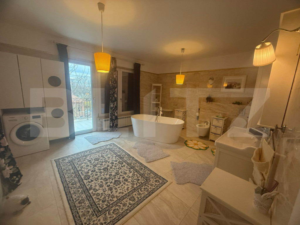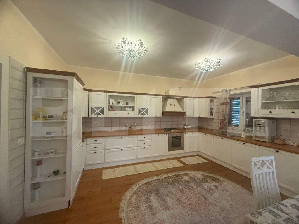 Blitz va ofera spre vanzare o proprietate deosebita, finalizata in anul 2021, ce imbina perfect confortul modern cu materiale de cea mai inalta calitate si un ambient exterior foarte frumos amenajat. Cu o suprafata utila de 360 mp si un teren de 700 mp, avand o deschidere generoasa de 24 de m ,aceasta casa este ideala pentru o familie care isi doreste spatiu, intimitate si rafinament. Constructia este realizata din caramida Porotherm (Cemacon), cu termoizolatie premium ( inclusiv polistiren extrudat aplicat si la nivelul podelelor ) , oferind un excelent confort termic pe tot parcursul anului. Acoperisul este realizat cu tigla de calitate superioara ElPreco , iar tamplaria PVC este asigurata de QFort , cu geamuri termopan eficiente energetic. Interiorul impresioneaza prin finisaje atent alese : gresie portelanata , parchet din lemn masiv si stratificat , usi interioare din lemn stratificat si elemente decorative elegante. Mobilierul din camere cat si din bai este de la Mobexpert ( baterii premium Mobexpert) , iar bucataria este complet echipata cu electrocasnice Franke. Confortul termic este asigurat de centrala proprie pe gaz , calorifere din aluminiu si sistem de incalzire prin pardoseala deja instalat. Proprietatea beneficiaza de doua surse de apa ( retea publica si put forat ) , instalatia fiind individuala pe fiecare nivel. Casa este dotata cu sistem de supraveghere video si videointerfon Hikvision , precum si prize si intrerupatoare modulare cap-scara , pentru un plus de functionalitate si confort. Gradina este dotata cu un sistem modern de irigatie cu sprinklere ascunse , controlabil direct de pe telefon. Aceasta proprietate reprezinta alegerea ideala pentru cei care cauta o locuinta premium , construita cu atentie la detalii intr-un cadru elegant si bine organizat. Cod ofertă / ID BLITZ: P167783 Id intern: P167783