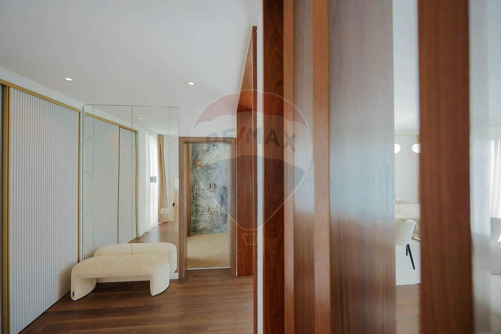 Fiecare cameră poartă amprenta viziunii Primera Interiors, unde designul, materialele și detaliile decorative creează un ambient armonios, elegant și funcțional. Mobilierul Eichholtz și Richmond Interiors oferă coerență și rafinament, completate de textile fine și candelabre statement. Sistemul de iluminat, conceput profesionist, echilibrează lumina naturală cu cea artificială, punând în valoare texturile și volumele interioare.