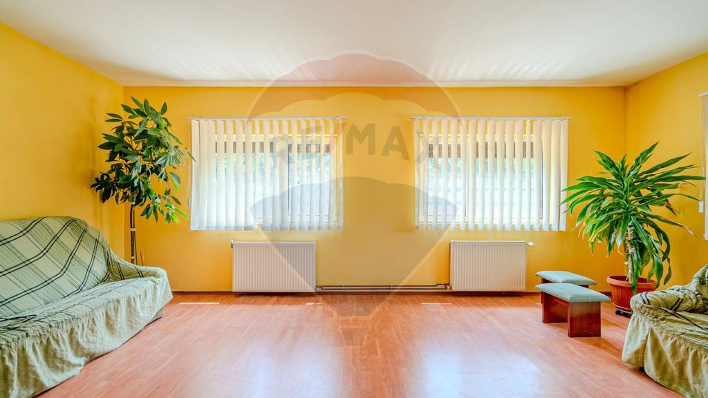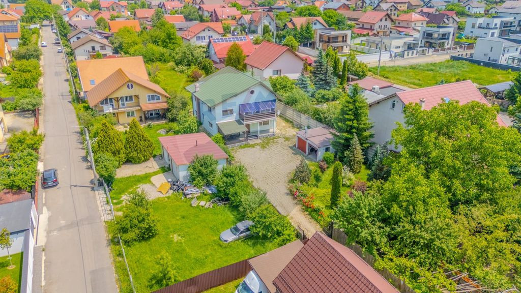 Drumul privat pana la proprietate, garajul acoperit, inchis pentru doua masini, curtea cu parcare pentru minim 6 masini si gradina cu pomi fructiferi, vita de vie, flori, sera pentru legume si panourile fixate pe sol, aduc plus valoare proprietatii.
