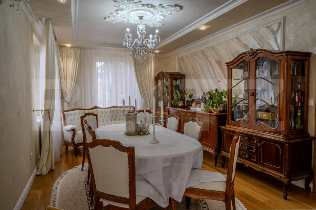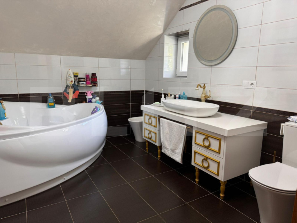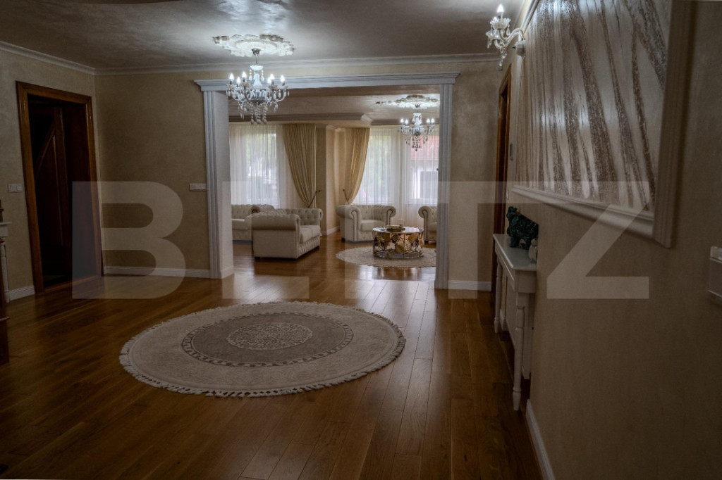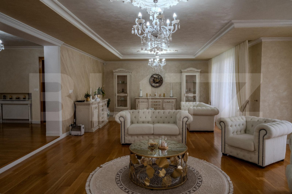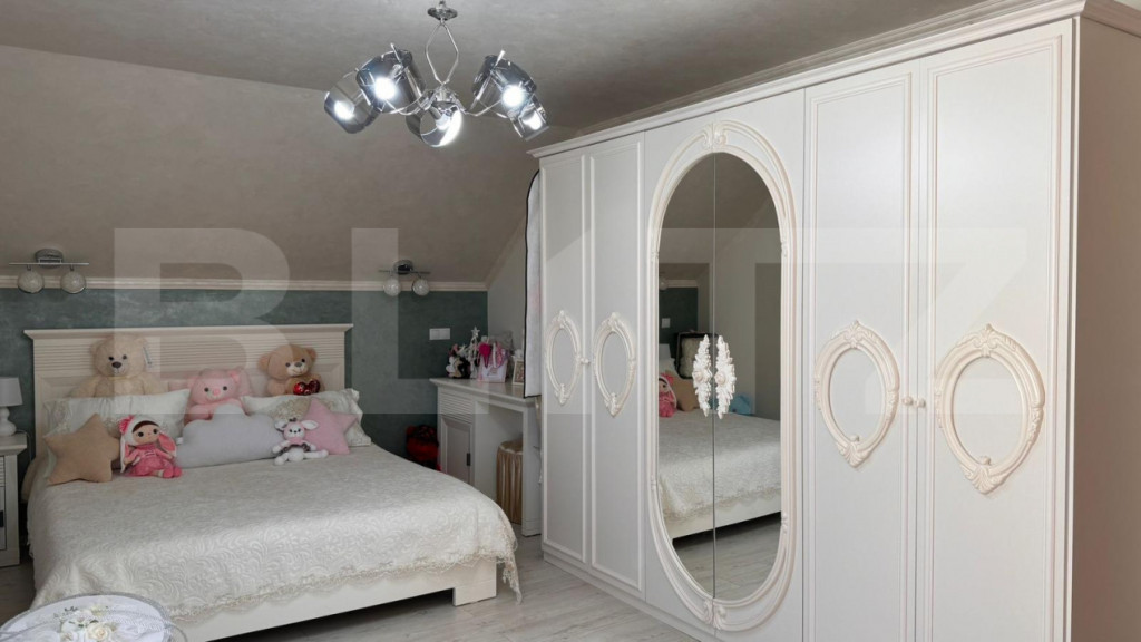 Blitz ofera spre vânzare o casă impresionantă, amplasată pe un teren generos de 1.000 mp, cu o suprafață utilă de 420 mp, situată într-o zonă liniștită și bine conectată, în apropiere de Hotel Diana. Compartimentare inteligentă: Demisol: bucătărie spațioasă, living, cameră tehnică (spălător), dressing Parter: living generos cu zonă de dining, dressing și baie, încălzire prin pardoseală Etaj: 3 dormitoare luminoase, bibliotecă, dressing, baie, 2 terase, pod Facilități moderne și accesibilitate: 3 intrări separate – perfect pentru familii extinse sau spații de lucru/relaxare separate Anexe complet echipate: bucătărie de vară elegant mobilată, 2 băi, zonă de grătar, 2 garaje Curte amenajată profesional: gazon, sistem de irigare automat, pavaj, fântână arteziană Se vinde complet mobilată și utilată, gata pentru mutare imediată! ???? Locuința se află pe o stradă asfaltată, cu iluminat public, aproape de stație de autobuz – ideală pentru familii cu copii sau pentru cei care caută un cadru urban liniștit. Cod ofertă / ID BLITZ: P150230 Id intern: P150230